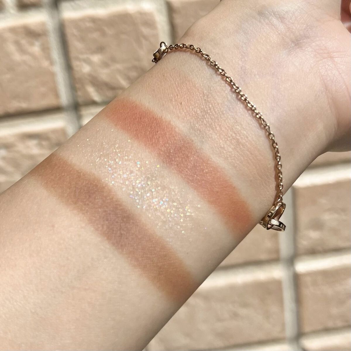 よくパレットのなかで明るいカラーをベースにまぶたに広く塗ることが多いのですが、パール感のあるカラーを避ける🙆♀️! パール感たっぷりの明るいカラーは涙袋に使うぐらい光を集めてぷっくり見せてくれるので、まぶたに広く使うと腫れぼったく見えがち😓 目元を明るくみせてくれたり、次に使うアイシャドウをぼかしやすくしてくれるけど、すっ飛ばしてメインのカラーを塗っちゃう✊🏻❤️🔥 涙袋にはたっぷり塗ってぷっくり見せる🙆♀️💕 シルキースフレアイズのマットタイプはすごく優れているな〜と感じました☺️💗 赤やオレンジなどは、入れすぎると腫れぼったく見えやすいので、見せたいカラーは下まぶた目尻にのせて色をたのしむ♡♡ パール感なしの透けマットだけじゃ物足りない… そう感じさせない華やかなラメが左上に入っているので黒目上と涙袋にのせるとすごく可愛い仕上がりに😍! 厄介な左右差のお陰でマットアイシャドウが好きになりました😌💕
