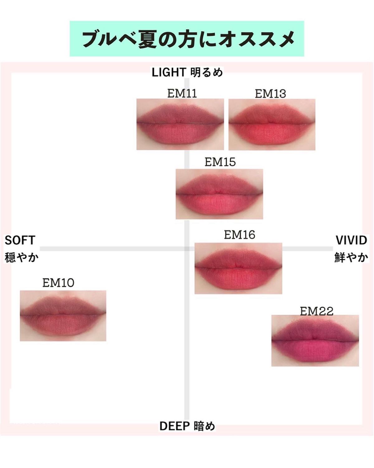 ▼ロムアンドティント素早く見る!細かくパーソナルカラータイプ分け📒【𝙏𝙬𝙞𝙩𝙩𝙚𝙧・𝙄𝙣𝙨𝙩𝙖𝙜𝙧𝙖𝙢→@ilmmiyu】※カラータイプ分けはラピスの16タイプカラーメソッド®︎に基づくアナリスト個人の見解です。rom&ndロムアンドジュー...