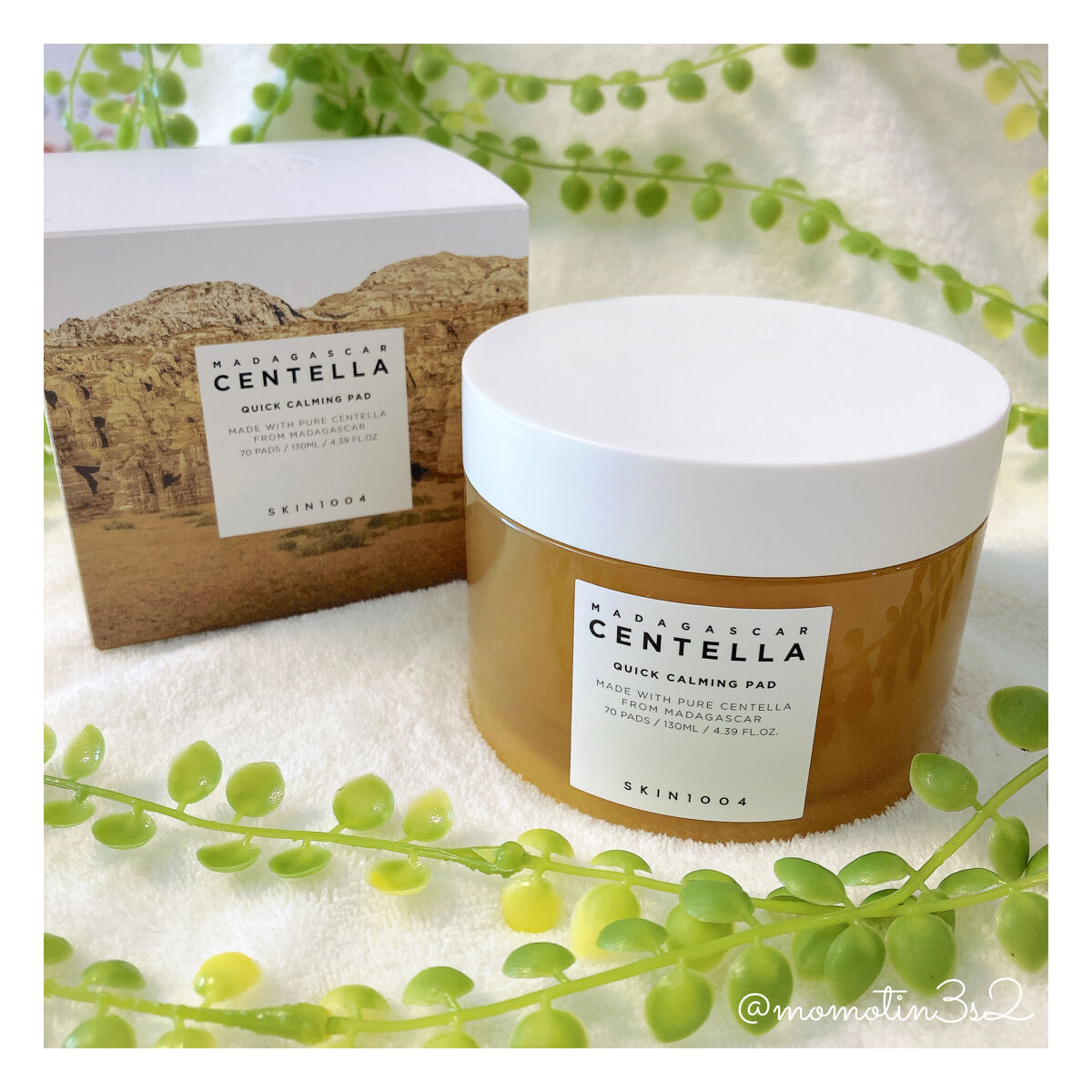 ひたひたの美容液をたっぷり含んだ大きめサイズのカーミングパッド 薄めですが柔らかくちょうどよくカットされていてピタッと密着感◎👍 ツボクサエキスがお肌を健やかに優しく整えてくれます 🪷 朝起きて〜メイク前に夕方〜疲れた時やお風呂あがりにも乾燥が気になる時やリフレッシュしたい時に気持ち良く心地よい優しい使用感です マダガスカル産ツボクサエキス SKIN1004こだわりのシカ成分(ツボクサエキス)(保湿成分)を配合揺らぎがちな肌をやさしく鎮静し肌のバリア機能をサポートして健やかな肌へ