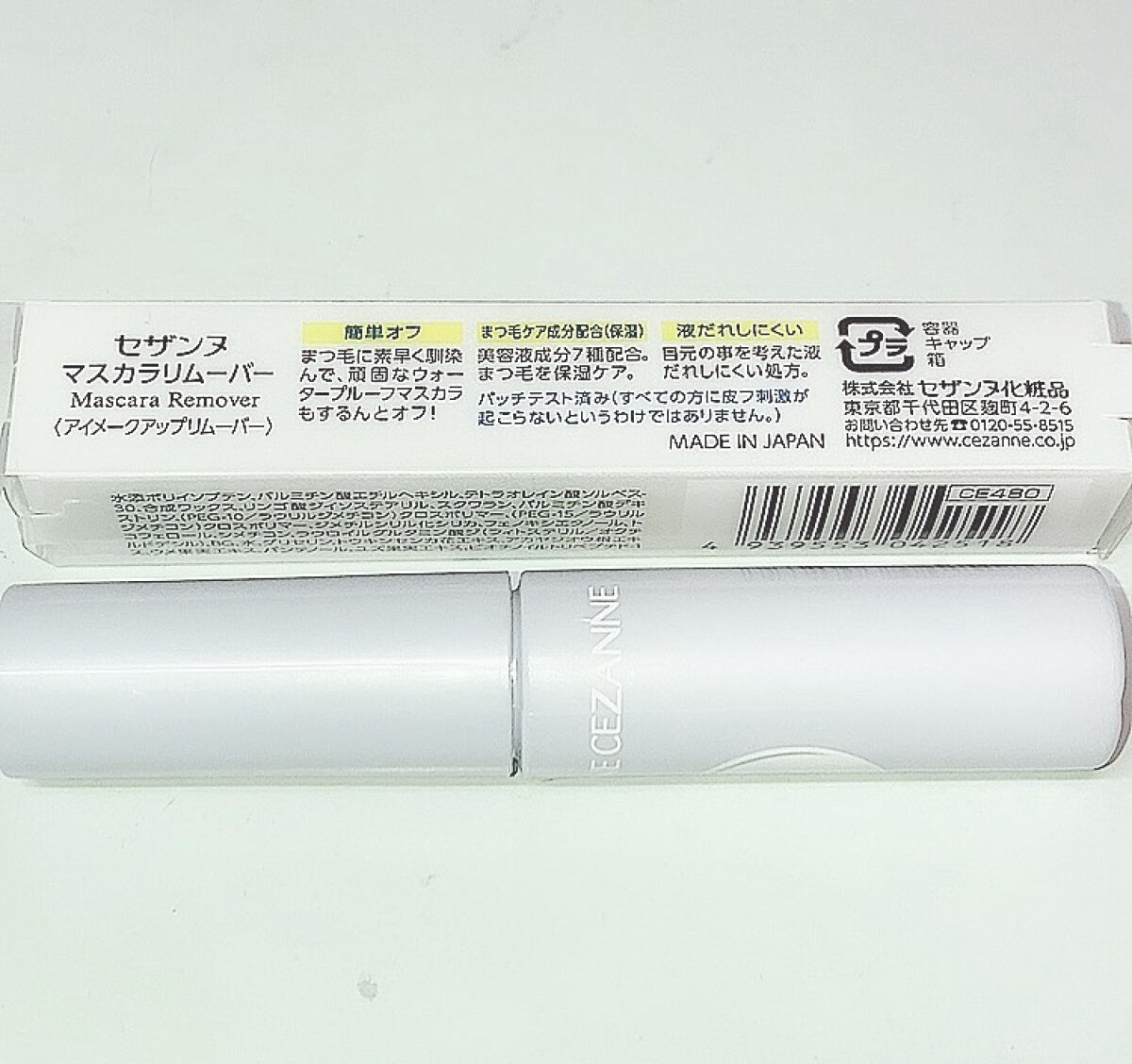 - まつ毛に素早く馴染んで、頑固なウォータープルーフマスカラもするんと落とせます。 セザンヌのウォータープルーフマスカラとフィルムタイプ(お湯オフタイプ)のマスカラ全てに使用できます。 目元のことを考えた液だれしにくい処方。 美容液成分7種(ユズ果実エキス、パンテノール、ビオチノイルトリペプチド-1、ウメ果実エキス、ラウロイルグルタミン酸ジ(フィトステリル/オクチルドデシル)、アカヤジオウ根エキス、トウキンセンカ花エキス)配合。 まつ毛にたっぷり塗れる幅広コームを採用。