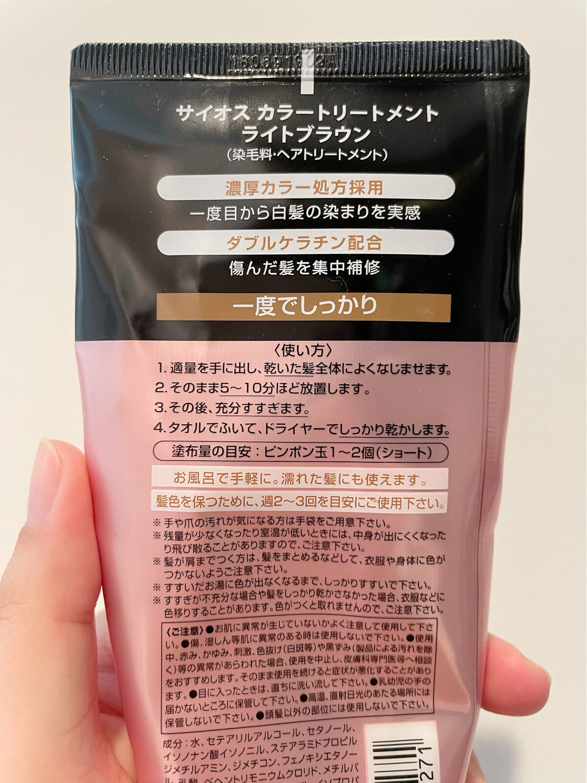 サイオスのカラートリートメントは、コスパ、染まり具合など、総合得点で気に入ってるよ✨ お家で簡単お手軽ケアできて良いわ💓 美容師さんによく『どうやってこんなにキレイに目立たなくぼかしてるんですか?』って聞かれるよ🎵 色はダークブラウンを愛用してるよ🎵