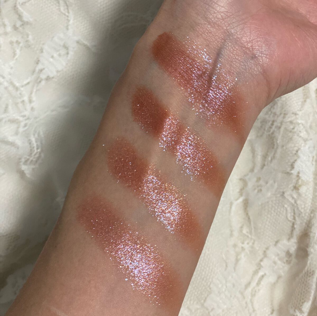 ボビイブラウンの名品ムーンストーンはベースがクリアなのでどんなアイシャドウにも合わせられるし上からトッピングするのにも向いています。 アディクションのマリアージュは2,200円でこの煌めき! 一番安いのに一番輝く、さすがです。 秋蛍は実はトッピングするとベースのシャドウを殺してしまうので目頭、下瞼などポイント使いかベースに使うのがおすすめです。