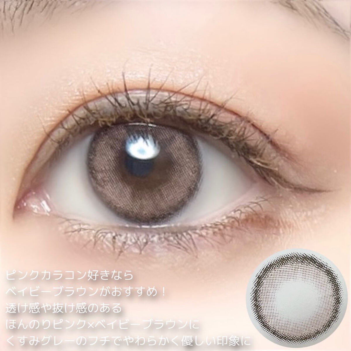 元祖色素薄い系カラコンといえばカンナロゼ! フェミニンなピンクベージュブラウンにふんわり馴染むぼかし系のふちで普段使いしやすい垢抜け系デザイン。 彩度高すぎずほんのりくすみ感が特徴のカンナロゼの中でピンク寄りは新鮮に感じました。可愛い…!