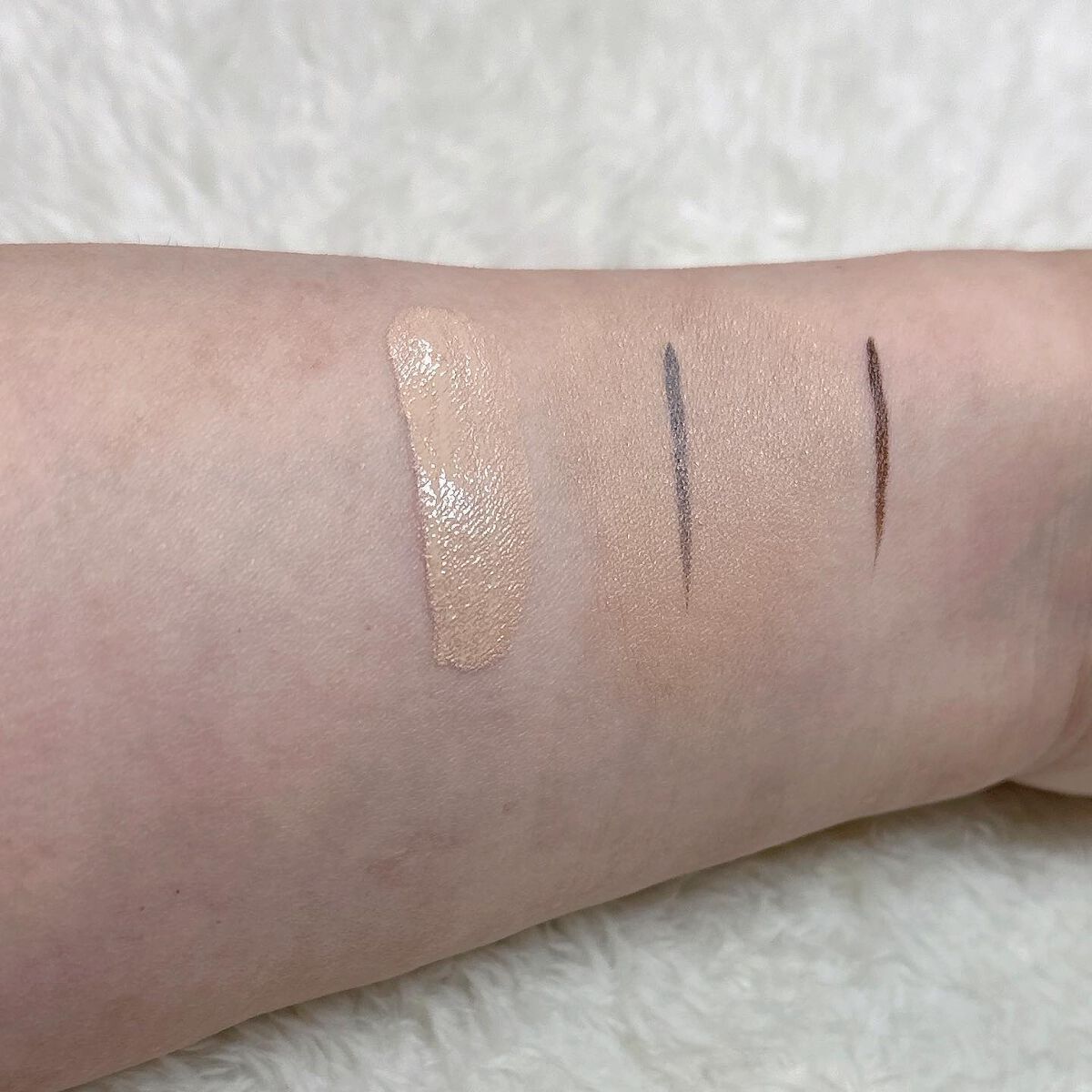 テクスチャーはサラサラだけど、飛び散るわけではなくて吸い付いてくる感じでした。 グリッターは、湿式のウェットさと押すとムニっとして、ちょっとゼリーテイストな気がします。ギラギラすぎなくて使いやすかったです。 ⑥はピンクも混ざっていてとても可愛い。アイスクリーム屋さんのストロベリーチーズケーキみたいな🍓これも、白すぎなくて肌馴染みの良い白系なので使いやすかったです。