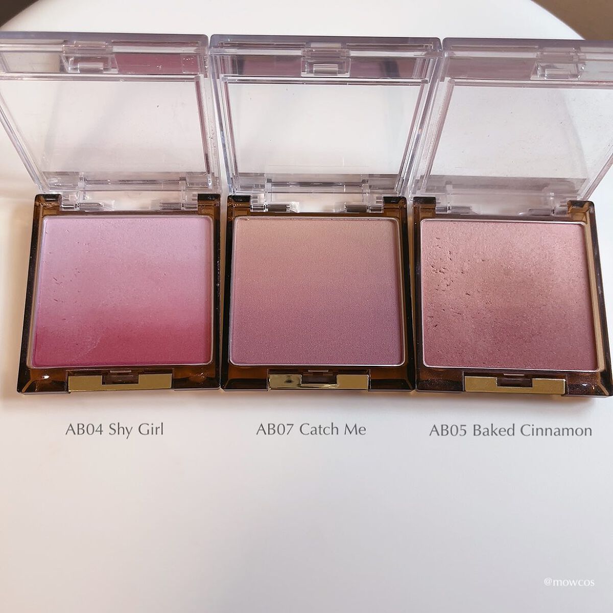 - <AB01-AB05共通> タルク、 ミリスチン酸亜鉛、 ジメチコン、 ジフェニルシロキシフェニルトリメチコン、 ワセリン、 セラミドNP、 スクワラン、 ホホバ種子油、 ブドウ種子油、 シリカ、 セスキイソステアリン酸ソルビタン、 トコフェロール、 水酸化Al、 フェノキシエタノール、 (+/-) グンジョウ、 マイカ、 黄4、 酸化チタン、 酸化鉄、 赤202、 赤226 <AB06-AB07> タルク、ミリスチン酸亜鉛、ジメチコン、ジフェニルシロキシフェニルトリメチコン、ワセリン、セラミドNP、スクワラン、ホホバ種子油、ブドウ種子油、シリカ、セスキイソステアリン酸ソルビタン、トコフェロール、水酸化Al、フェノキシエタノール、(+/-)グンジョウ、マイカ、酸化チタン、酸化鉄、赤226 <AB08-AB09> タルク、ミリスチン酸亜鉛、ジメチコン、ジフェニルシロキシフェニルトリメチコン、ワセリン、セラミドNP、スクワラン、ホホバ種子油、ブドウ種子油、シリカ、セスキイソステアリン酸ソルビタン、トコフェロール、水酸化Al、フェノキシエタノール、グンジョウ、マイカ、酸化チタン、酸化鉄、赤226、硫酸Ba