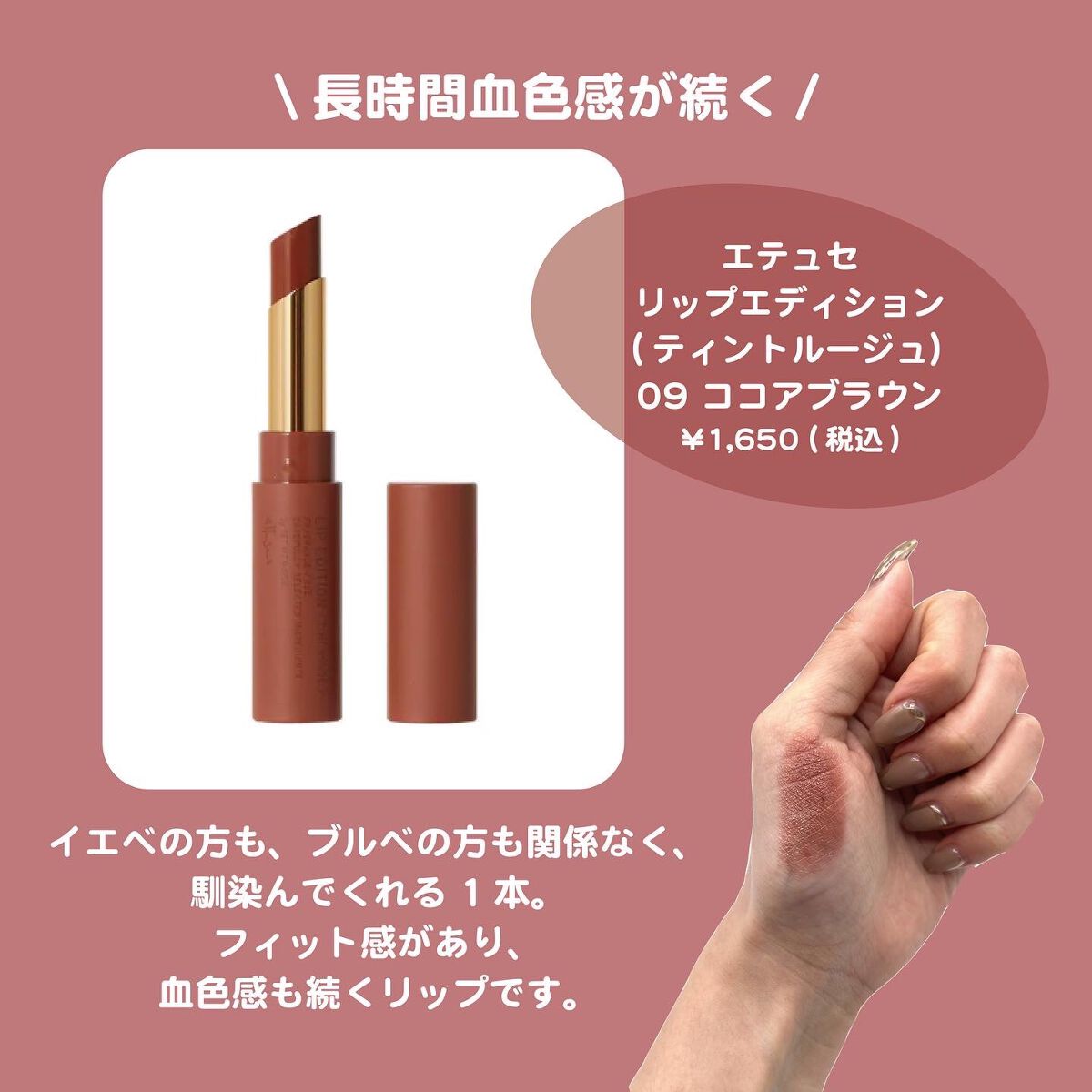 | 口紅・グロス・リップライナーランキング第18位 | まるで自身の唇と一体化したかのような自然な血色感で、 むっちりとした色気のある唇へ導く新作リップ💄 粘膜のような色とツヤが長時間つづきます💗 | 詳細を見る | |