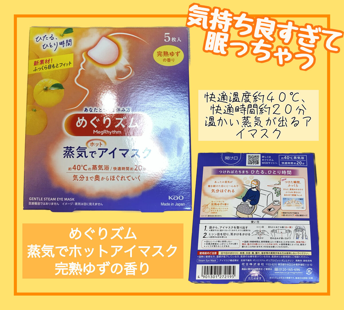 | 40℃の蒸気が疲れた目元をほぐしてくれる!ゆずの香りにとても癒される♡ | 詳細を見る | ||
