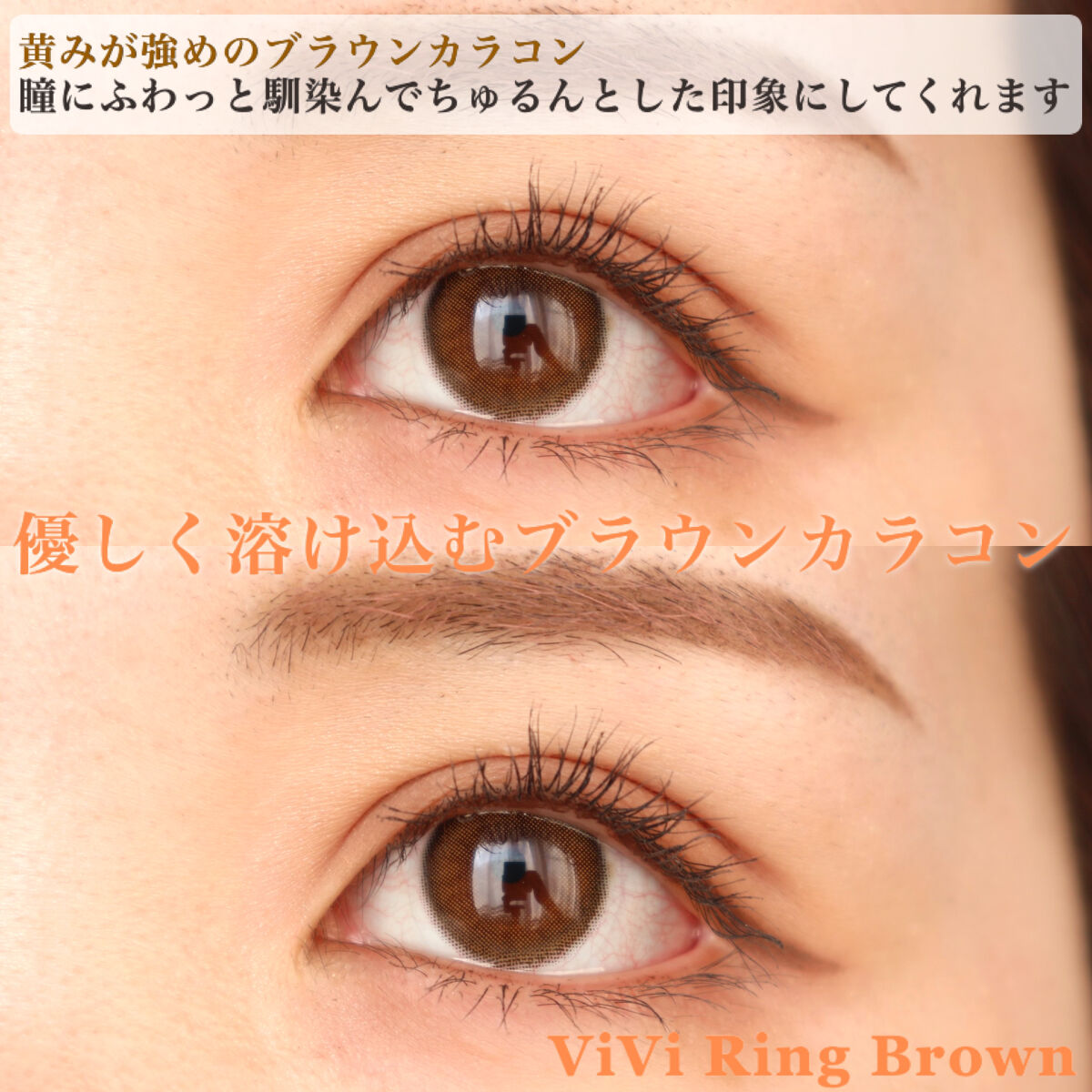 今回使ってみた2種類のカラコン どちらも馴染み良すぎ!しっかりめにふわっと発色するから裸眼っぽく盛れるよん♡ SHINE TOUCHはかわいさのあるミルキーな瞳に♡ ViVi RINGのチョコは派手すぎない色素薄い系の瞳に♡ チョコの色味も明るすぎないからメイクを選ばず使いやすいと思う!さりげなく発色がかわいい~♡