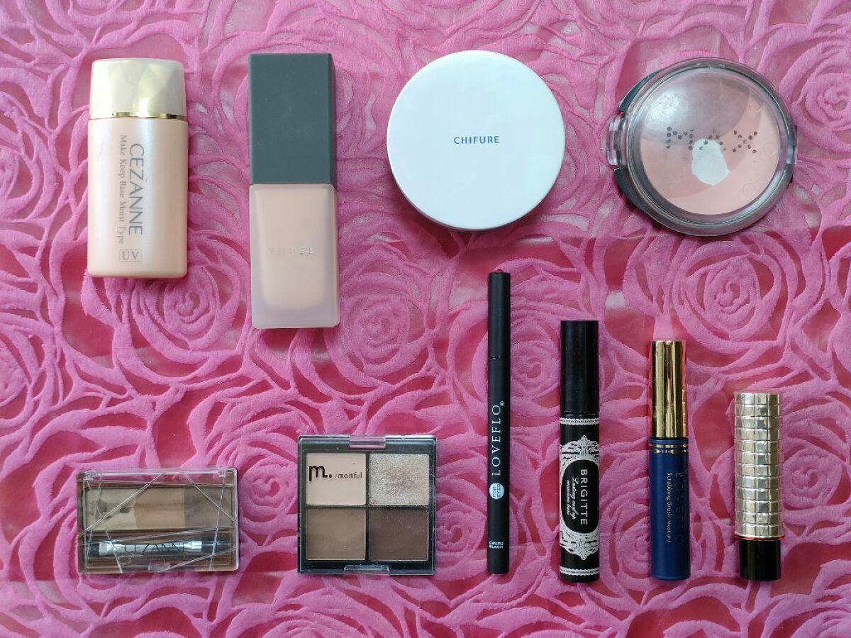 アリィー ニュアンスチェンジUV ジェル RSを、顔全体にまんべんなく塗ります。 RMK RMK ジェルクリーミィファンデーション 103を、顔全体にまんべんなく塗ります。 ジョンソンベビー ジョンソン ベビーパウダーを、顔全体にまんべんなく軽くはたきます。 THE BODY SHOP bronze shade warm glowを、両頬に塗ります。 KATE リフレクトミラーアイズ BR-1の締め色を、眉毛全体にまんべんなく塗ります。 URGLAM UR GLAMBLOOMING EYE COLOR PALETTE 01を、使用しました。 ちふれ リキッド アイライナー 筆ペンタイプ BK30 ブラックを、塗ります。 CEZANNE エアリーカールマスカラを、まつ毛全体にまんべんなく塗ります。 MAYBELLINE NEW YORK コロッサルボリュームエクスプレスを、まつ毛全体にまんべんなく塗ります。 MAYBELLINE NEW YORK SPステイ マットインク 135を、唇全体にまんべんなく塗ります。