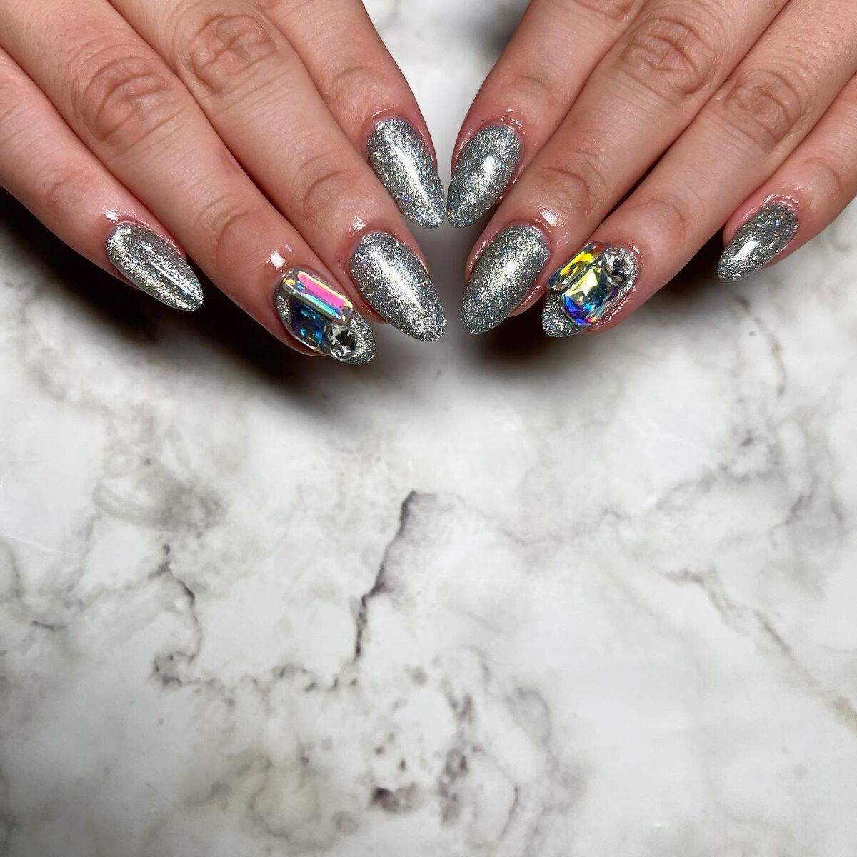 こちらおまかせでさせていただいたネイルです💅💅💅💅看板メニューのおまかせコースです❤️❤️❤️✼••┈┈••✼••┈┈••✼••┈┈••✼••┈┈••✼#glitter#silvernails#glitternails#unicorn#ネイル...