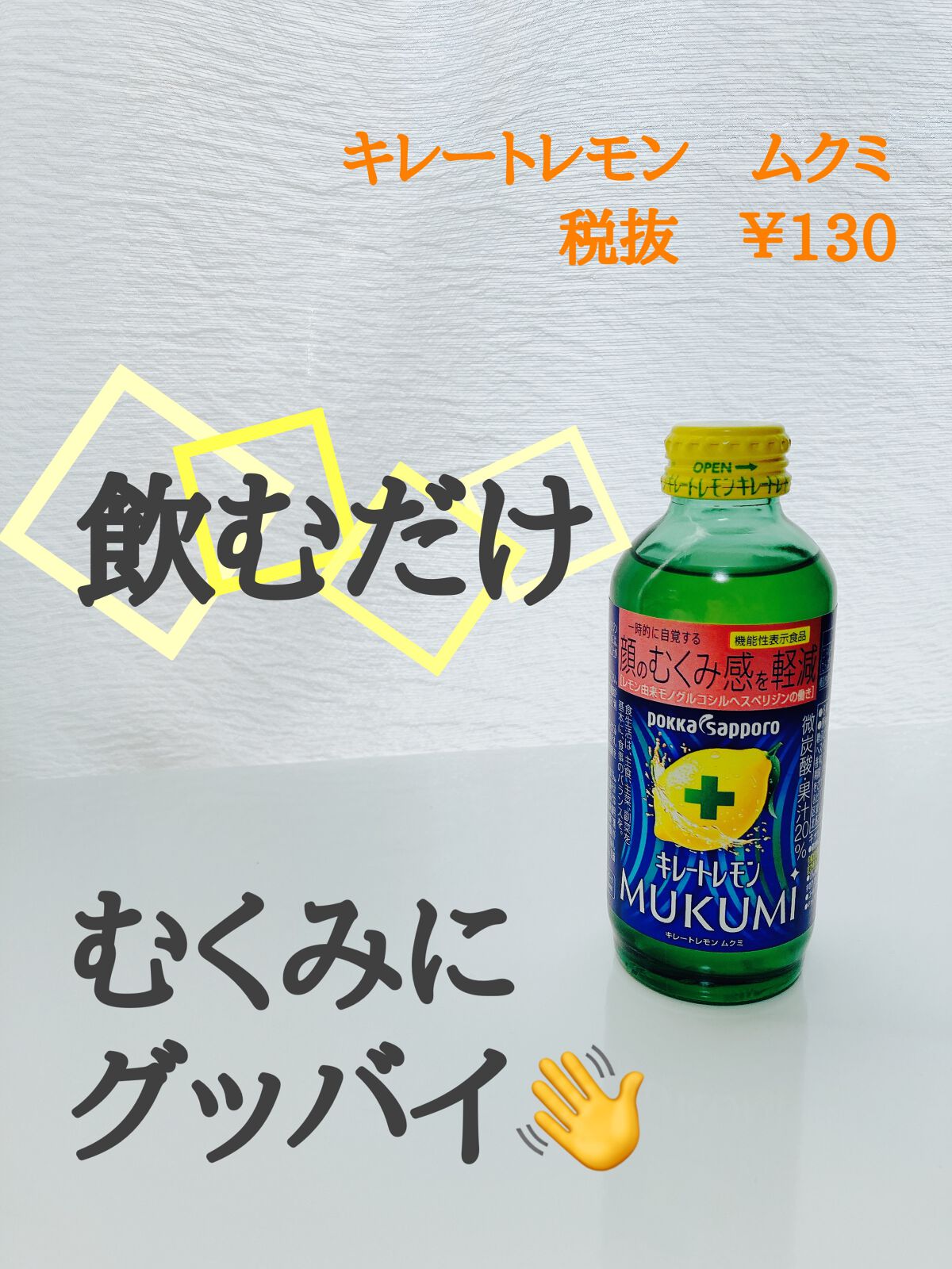 キレートレモンのむくみを軽減してくれる炭酸タイプのドリンクです。のりしろさんの投稿見て私も飲んでみたいと思い買いました。●レモン由来モノグルコシルヘスペリジン一時的に顔のむくみを軽減してくれるそうです。普通のキレートレモンは美味しくて好きだけ...