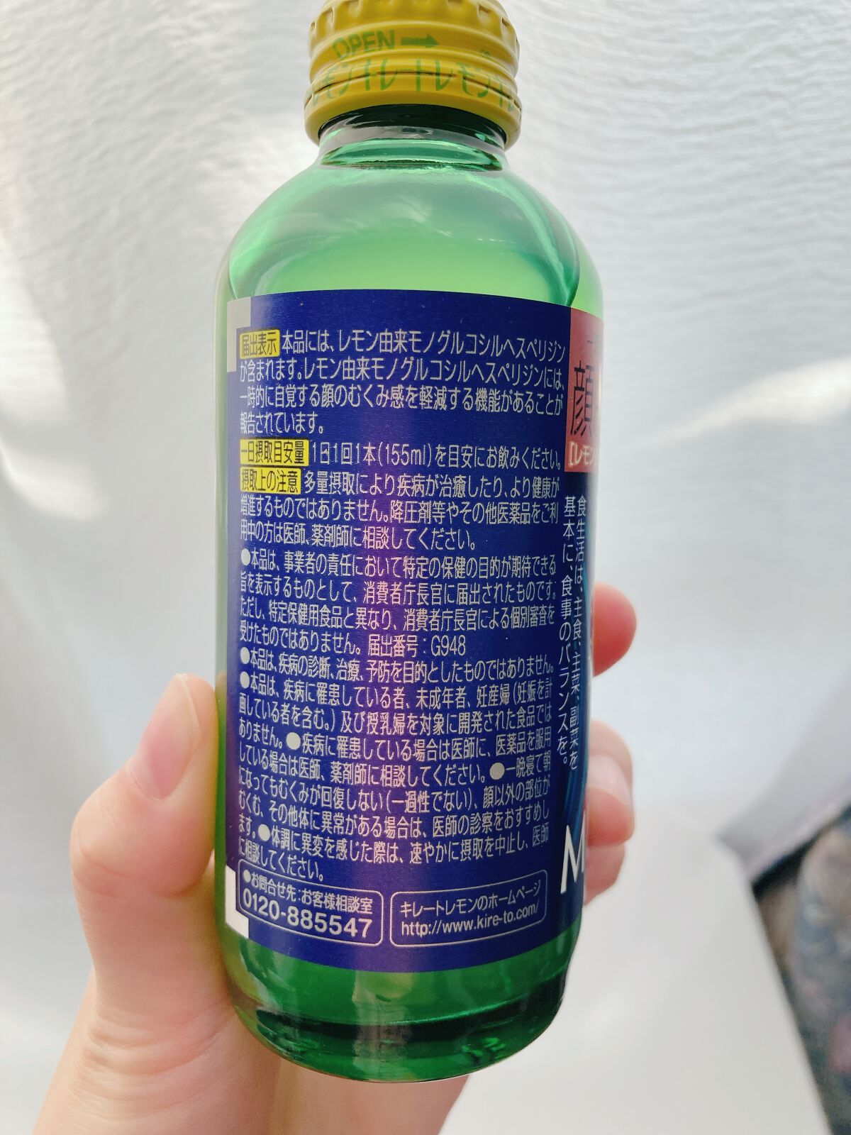 - 【機能性表示食品】 レモン1個分の果汁、ビタミンC1350mg、クエン酸1350mg、レモン由来モノグルコシルヘスペリジンが入った「機能性表示食品のレモン小瓶ドリンク」です。 レモンの酸味と炭酸の刺激でリフレッシュしつつ、レモン由来モノグルコシルヘスペリジンの働きで一時的に自覚する顔のむくみ感を軽減することができます。