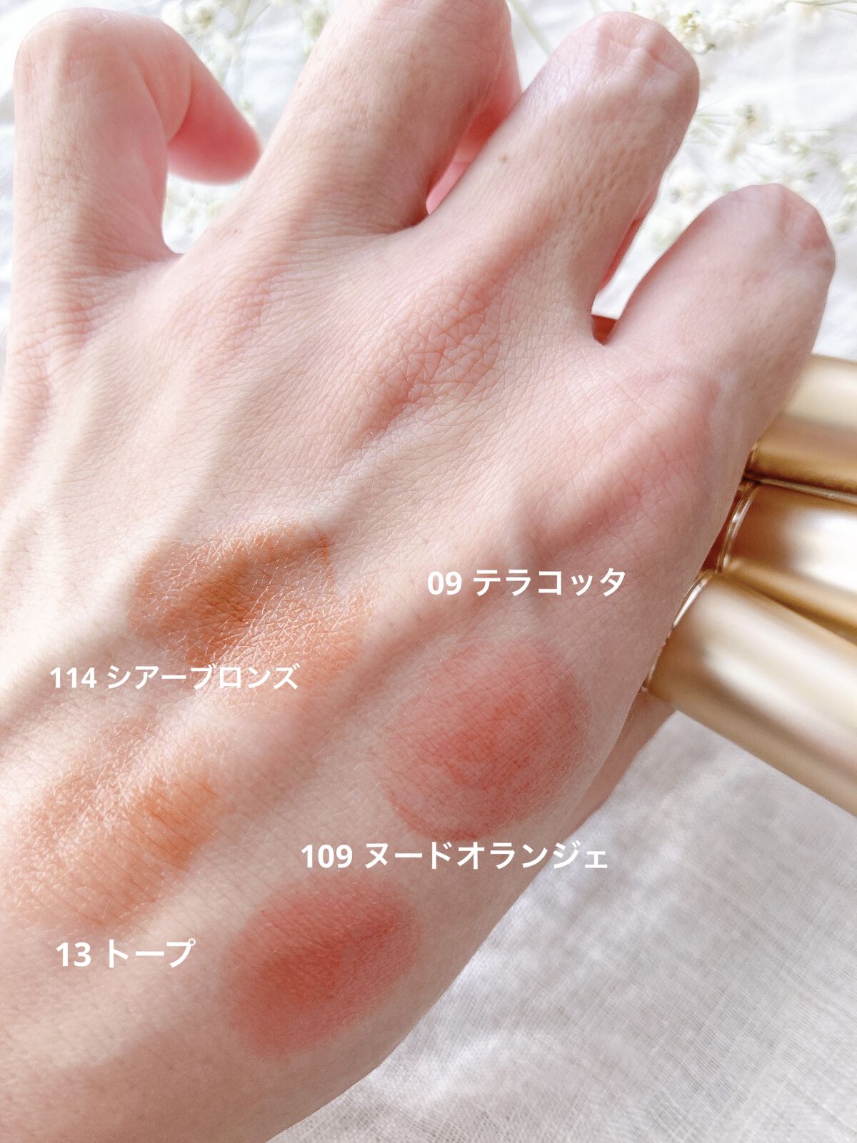 - <05 コーラルピンク(復刻新色)> スクワラン、リンゴ酸ジイソステアリル、(イソステアリン酸ポリグリセリル-2/ダイマージリノール酸)コポリマー、ダイマージリノール酸(フィトステリル/イソステアリル/セチル/ステアリル/ベヘニル)、イソノナン酸イソトリデシル、水添ポリイソブテン、トリ(カプリル酸/カプリン酸)グリセリル、ラウロイルグルタミン酸ジ(フィトステリル/オクチルドデシル)、合成ワックス、パラフィン、ダイマージリノール酸ジ(イソステアリル/フィトステリル)、マイクロクリスタリンワックス、水酸化Al、ジメチコン、トコフェロール、酸化チタン、赤201、赤202、赤218、橙201、黄4 <09 テラコッタ> スクワラン、リンゴ酸ジイソステアリル、(イソステアリン酸ポリグリセリル-2/ダイマージリノール酸)コポリマー、ダイマージリノール酸(フィトステリル/イソステアリル/セチル/ステアリル/ベヘニル)、イソノナン酸イソトリデシル、水添ポリイソブテン、トリ(カプリル酸/カプリン酸)グリセリル、ラウロイルグルタミン酸ジ(フィトステリル/オクチルドデシル)、合成ワックス、パラフィン、ダイマージリノール酸ジ(イソステアリル/フィトステリル)、マイクロクリスタリンワックス、水酸化Al、ジメチコン、トコフェロール、酸化チタン、酸化鉄、赤201、赤202、赤223、橙201、黄4 <10 ボルドーブラウン> スクワラン、リンゴ酸ジイソステアリル、(イソステアリン酸ポリグリセリル-2/ダイマージリノール酸)コポリマー、ダイマージリノール酸(フィトステリル/イソステアリル/セチル/ステアリル/ベヘニル)、イソノナン酸イソトリデシル、水添ポリイソブテン、トリ(カプリル酸/カプリン酸)グリセリル、ラウロイルグルタミン酸ジ(フィトステリル/オクチルドデシル)、合成ワックス、パラフィン、ダイマージリノール酸ジ(イソステアリル/フィトステリル)、マイクロクリスタリンワックス、水酸化Al、ジメチコン、トコフェロール、酸化チタン、酸化鉄、赤201、赤202、赤223、橙201、黄4、青1 <11 フィグ> スクワラン、リンゴ酸ジイソステアリル、(イソステアリン酸ポリグリセリル-2/ダイマージリノール酸)コポリマー、ダイマージリノール酸(フィトステリル/イソステアリル/セチル/ステアリル/ベヘニル)、イソノナン酸イソトリデシル、水添ポリイソブテン、トリ(カプリル酸/カプリン酸)グリセリル、ラウロイルグルタミン酸ジ(フィトステリル/オクチルドデシル)、合成ワックス、パラフィン、ダイマージリノール酸ジ(イソステアリル/フィトステリル)、マイクロクリスタリンワックス、水酸化Al、ジメチコン、トコフェロール、酸化チタン、酸化鉄、赤201、赤202、赤218、橙201、黄4、青1 <13 トープ> スクワラン、リンゴ酸ジイソステアリル、(イソステアリン酸ポリグリセリル-2/ダイマージリノール酸)コポリマー、ダイマージリノール酸(フィトステリル/イソステアリル/セチル/ステアリル/ベヘニル)、イソノナン酸イソトリデシル、水添ポリイソブテン、トリ(カプリル酸/カプリン酸)グリセリル、ラウロイルグルタミン酸ジ(フィトステリル/オクチルドデシル)、合成ワックス、パラフィン、ダイマージリノール酸ジ(イソステアリル/フィトステリル)、マイクロクリスタリンワックス、水酸化Al、ジメチコン、トコフェロール、酸化スズ、酸化チタン、マイカ、酸化鉄、赤201、赤202、赤223、橙201、黄4 <15 ヌードオレンジ> スクワラン、リンゴ酸ジイソステアリル、(イソステアリン酸ポリグリセリル-2/ダイマージリノール酸)コポリマー、ダイマージリノール酸(フィトステリル/イソステアリル/セチル/ステアリル/ベヘニル)、イソノナン酸イソトリデシル、水添ポリイソブテン、トリ(カプリル酸/カプリン酸)グリセリル、ラウロイルグルタミン酸ジ(フィトステリル/オクチルドデシル)、合成ワックス、パラフィン、マイカ、ダイマージリノール酸ジ(イソステアリル/フィトステリル)、マイクロクリスタリンワックス、水酸化Al、シリカ、ジメチコン、トコフェロール、酸化スズ、酸化チタン、酸化鉄、赤201、赤202、赤223、橙201、黄4 <16 シアーブラウン(新色)> スクワラン、リンゴ酸ジイソステアリル、(イソステアリン酸ポリグリセリル-2/ダイマージリノール酸)コポリマー、ダイマージリノール酸(フィトステリル/イソステアリル/セチル/ステアリル/ベヘニル)、イソノナン酸イソトリデシル、水添ポリイソブテン、トリ(カプリル酸/カプリン酸)グリセリル、ラウロイルグルタミン酸ジ(フィトステリル/オクチルドデシル)、合成ワックス、パラフィン、ダイマージリノール酸ジ(イソステアリル/フィトステリル)、マイクロクリスタリンワックス、水酸化Al、ジメチコン、トコフェロール、酸化チタン、酸化鉄、赤201、赤202、橙201、黄4 <119 アクアベージュ(限定色)> スクワラン、リンゴ酸ジイソステアリル、(イソステアリン酸ポリグリセリル-2/ダイマージリノール酸)コポリマー、ダイマージリノール酸(フィトステリル/イソステアリル/セチル/ステアリル/