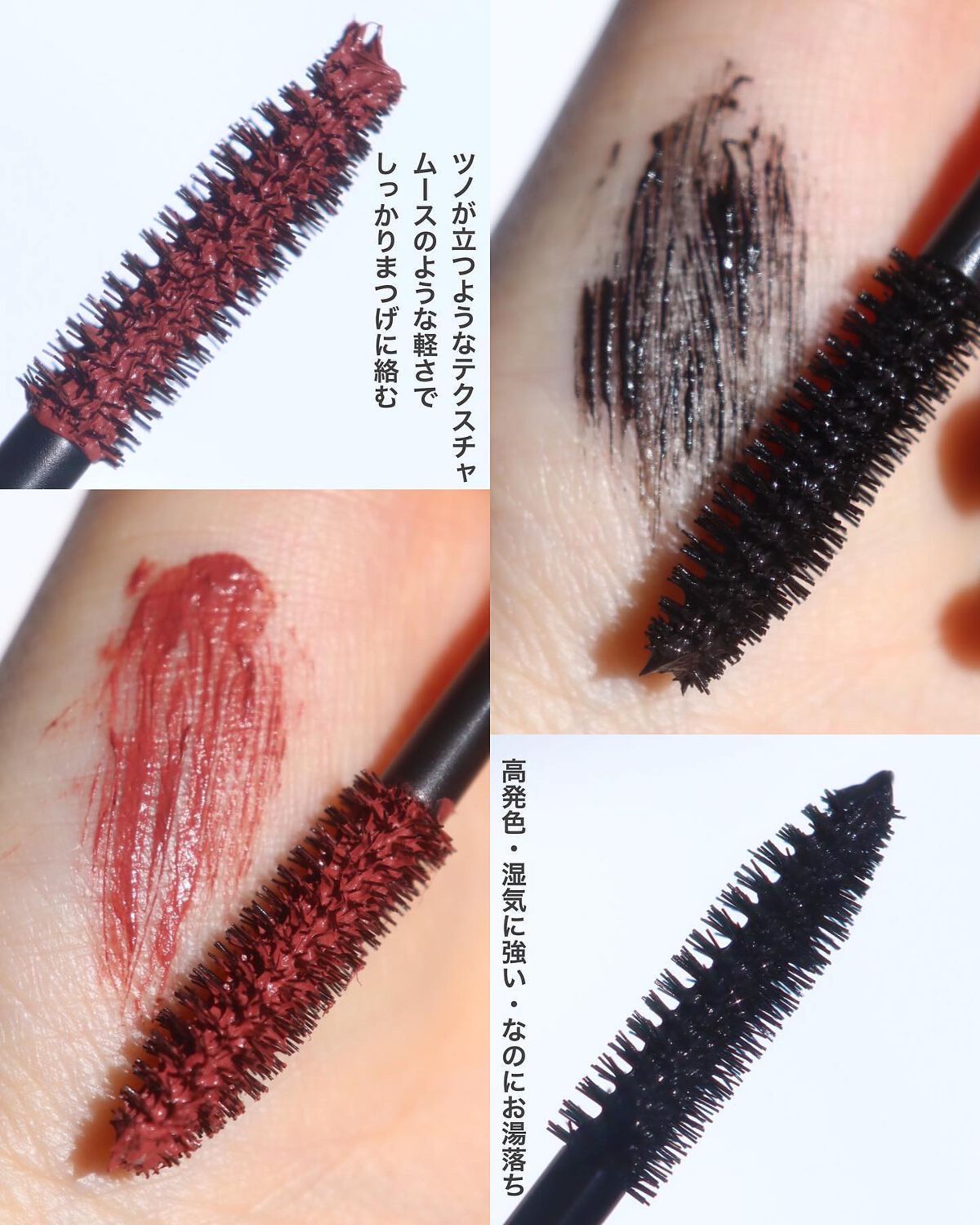 - 細く短いまつ毛も根元から液がしっかり絡んで、1本1本が存在感のあるボリュームロングまつ毛へ導きます。皮脂や汗、涙、湿気、擦れにも強いウォータープルーフ&マスクプルーフ処方で、どんなシーンでも自分らしさをキープ。さらっとしたテクスチャーが、ひと塗り毎にまつ毛をセパレートして、素早くコーティング。重ね塗りしてもダマになりにくく、メイクを落とすまでキレイな発色とカールが続きます。