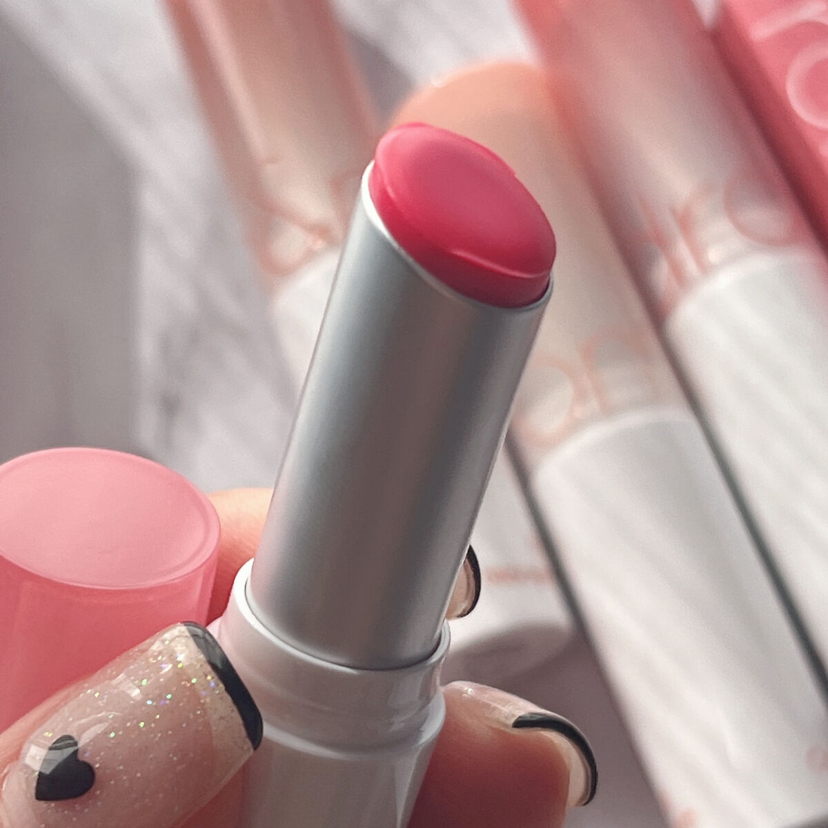 - もちっとした水膜で弾けそうなツヤリップ 1.軽い塗り心地のなめらかで透明な水爆弾ツヤ 2.塗った瞬間から唇を鮮やかに彩る多彩なカラーバーム 3.植物性保湿オイルでしっとりもっちり保湿バーム