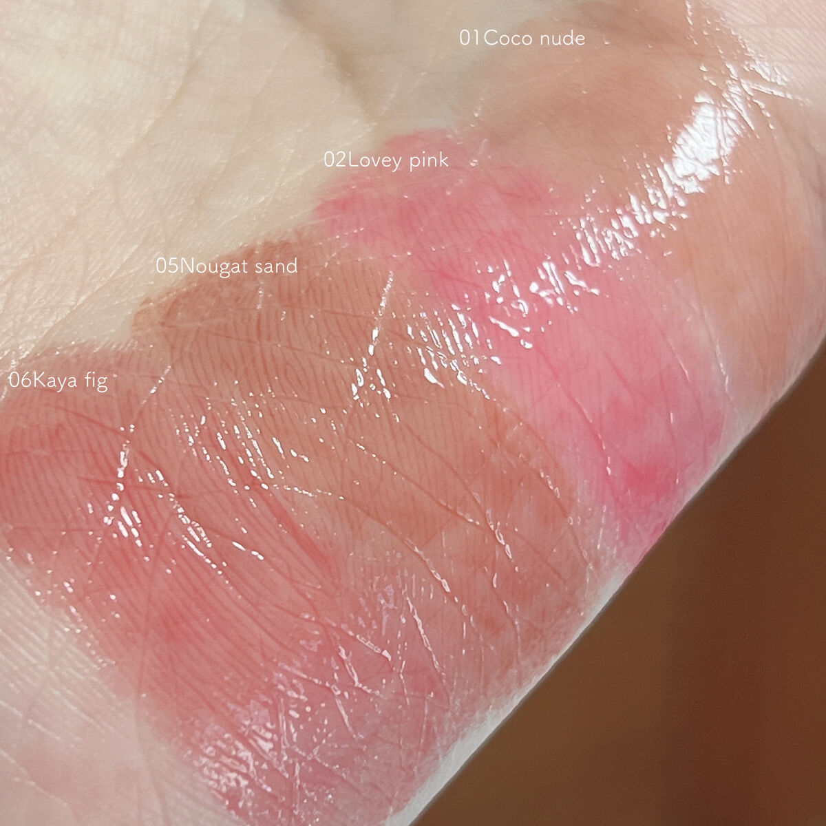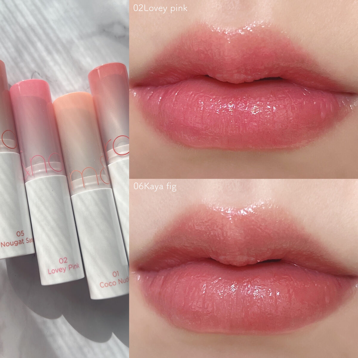 \rom&ndグラスティングメルティングバーム/01 ココヌード CocoNude02 ラヴィーピンク LoveyPink03 ソルベバーム SorbetBalm05 ヌガーサンド NougatSand06カヤフィグKayaFig07 モーブ...