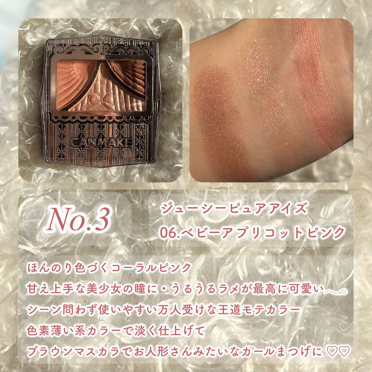 キャンメイクとは思えないふわふわマットのアイシャドウ𓂃◌𓈒𓐍マットアイシャドウのテクスチャはプチプラではトップレベルだと思います𓍯 税込み858円で、アイシャドウ・アイブロウ・ノーズシャドウの3つの使い方ができるんです…!! チップ・ブラシが本当に使いやすくてこれだけで売って欲しいと思うくらい ꪔ̤̮ ひとつは持っておきたいアイシャドウパレットお好きなカラーが見つかりますように𓂃𓈒𓂂
