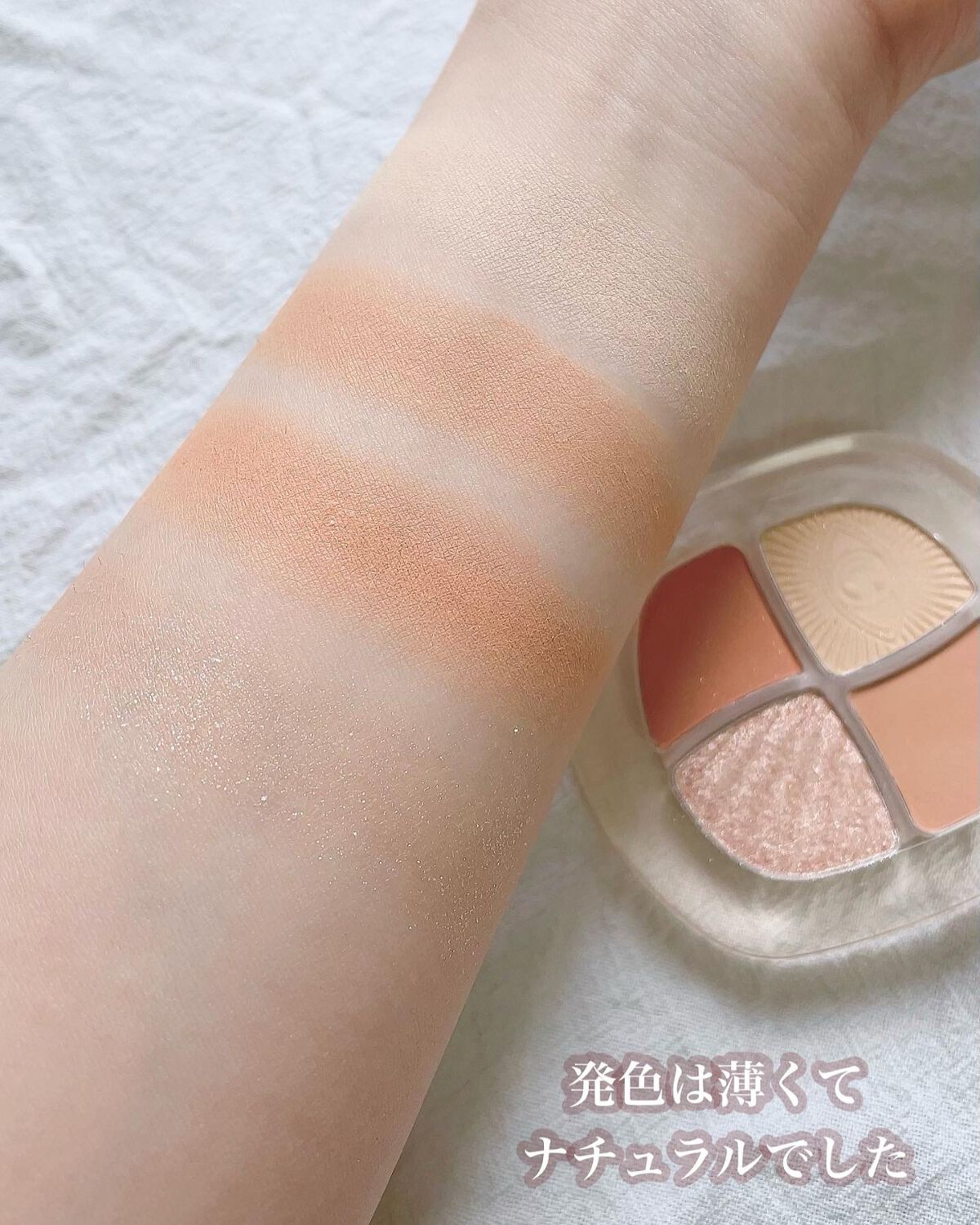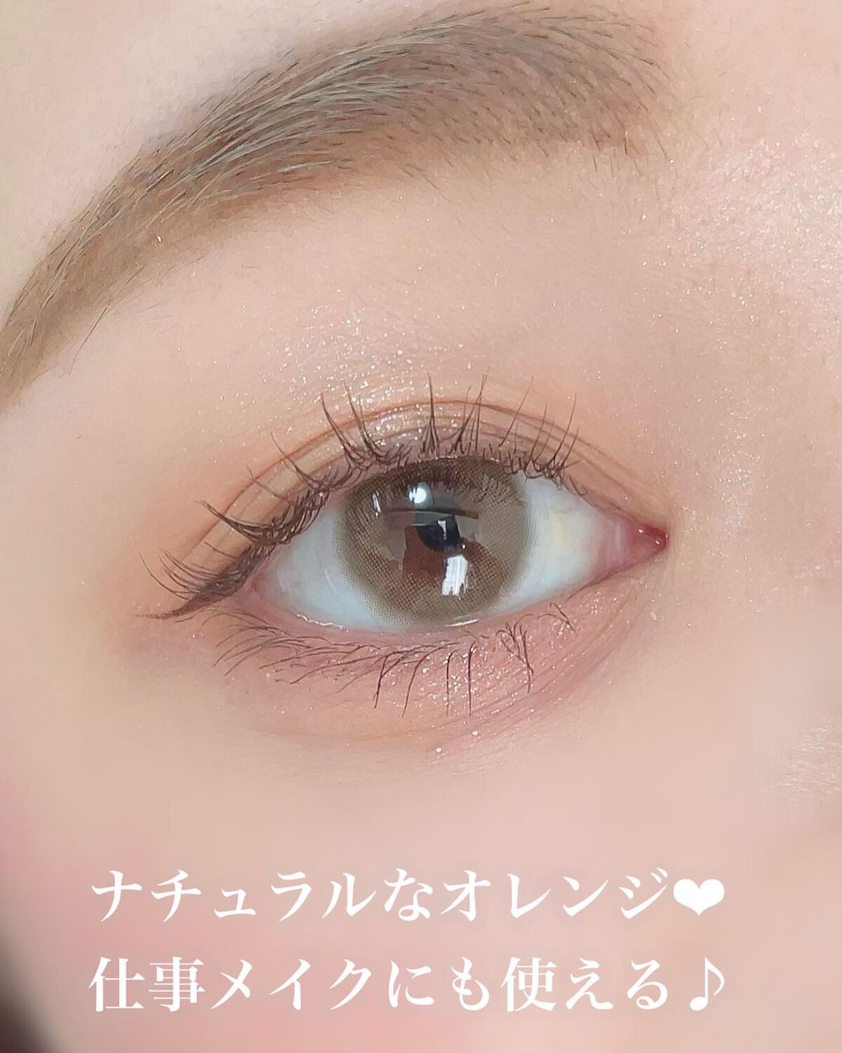このアイシャドウは発色は薄めだけど その代わりにラメが凄くて!! なのでオレンジメイクしたいけど なかなか挑戦出来ない方とかにも◎ オレンジを単体で塗れば可愛い印象に ブラウンを加えれば大人っぽい印象に とっても可愛いアイシャドウなので 是非チェックしてみてください🍯💗