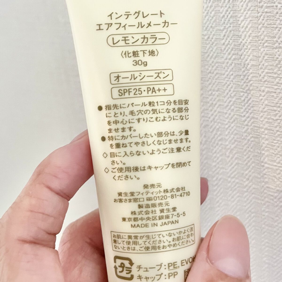 ゆいです。本日は私の愛用している化粧下地をご紹介します。●INTEGRATEAIRFEELMAKERレモンカラー&ミントカラー化粧下地 30gSPF25PA++本体価格 税抜900円プチプラでとてもお試ししやすい下地です。まずテクスチャーは固...