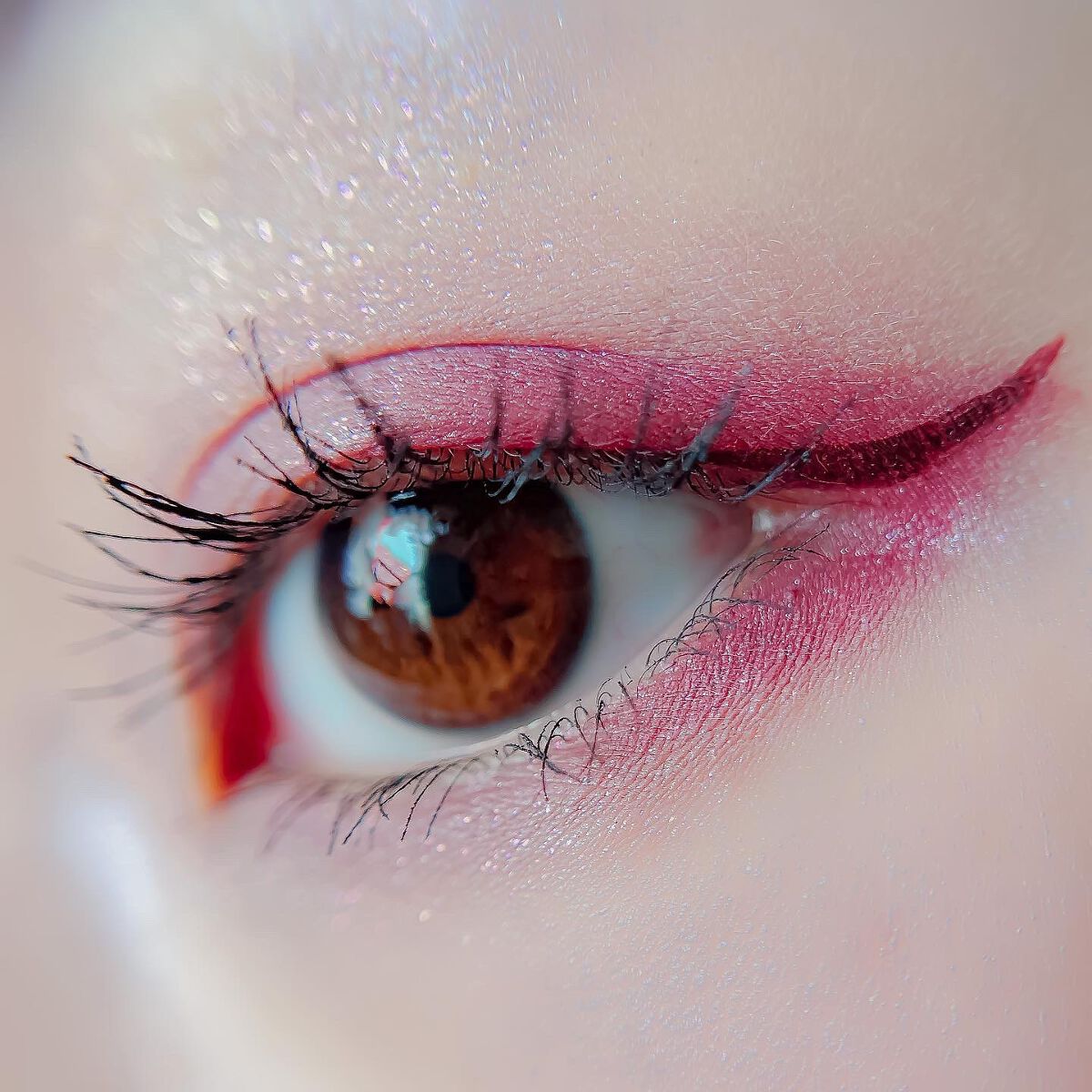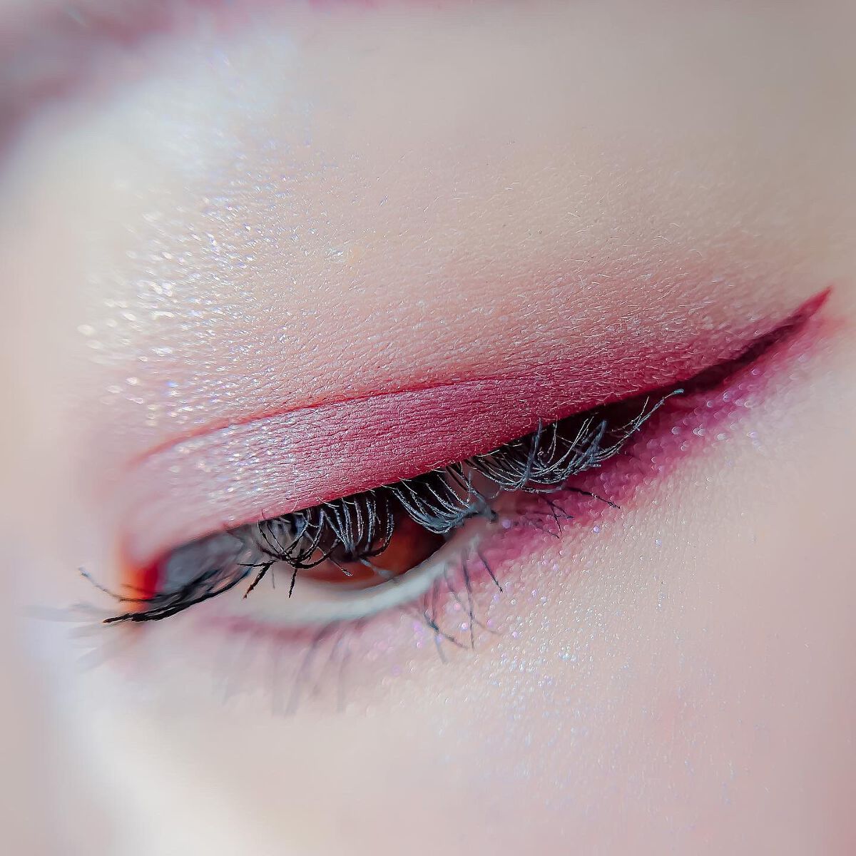 ピンクにグレージュも良いですね👌💗 今日は可愛らしい感じにしてみました💕 上下瞼黒目〜目頭側にラメを塗ってキラキラさせております🤩 目尻はマットのピンクを濃いめに重ねて💗 グレージュのアイライナーと相性◎
