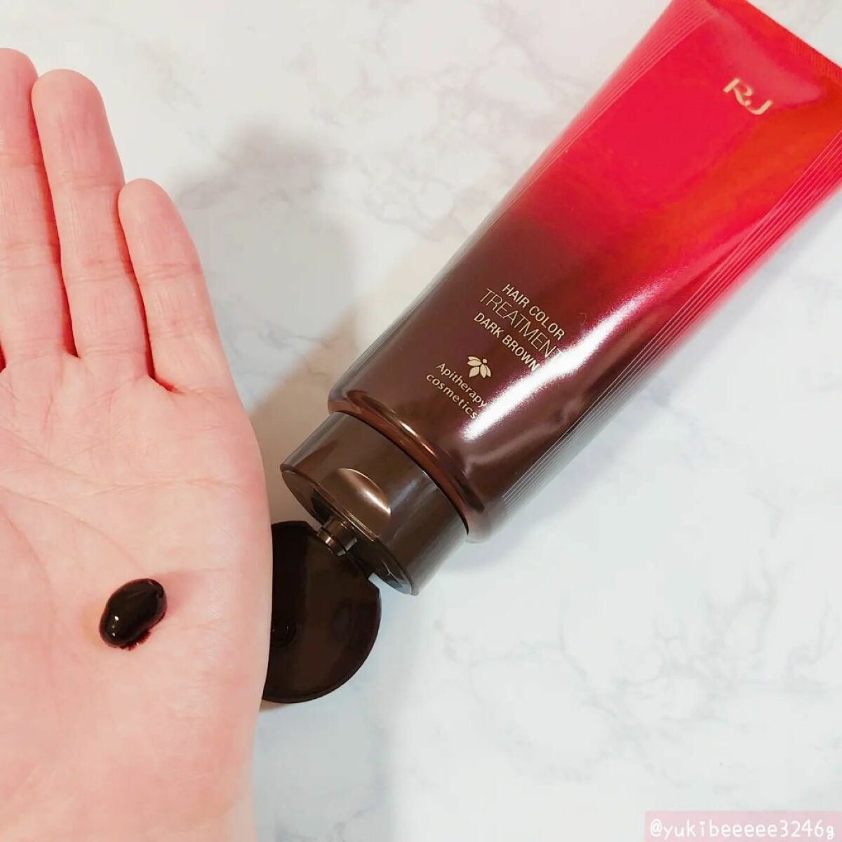 山田養蜂場の、アピセラピーコスメティクスよりRJヘアカラートリートメント ご紹介✨️ 色はダークブラウン 使い方は簡単で、シャンプー後、ビニール手袋して手に取り白髪部分に塗ってちょっと放置。 ヘアカラーなのにトリートメントも出来るのはポイント高め 白髪染めでお悩みの方は是非(*^^*)