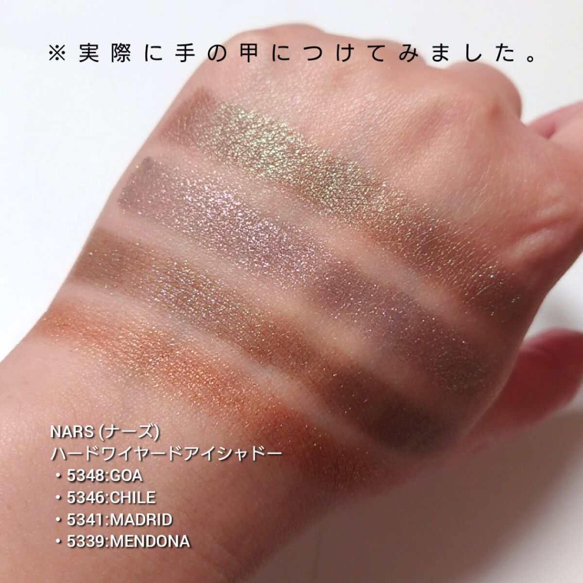 - <5334> ホウケイ酸(Ca、Na)、トリ(カプリル酸、カプリン酸)グリセリル、タルク、イソドデカン、ジメチコン、リンゴ酸ジイソステアリル、ポリエチレン、マイカ、合成フルオロフロゴパイト、フェノキシエタノール、セチルジメチコン、酸化スズ、オキシ塩化ビスマス、酸化チタン、カルミン、グンジョウ、酸化鉄 <5335> ジメチコン、イソドデカン、マイカ、ホウケイ酸(Ca、Na)、タルク、リンゴ酸ジイソステアリル、ポリエチレン、セチルジメチコン、フェノキシエタノール、水酸化Al、シリカ、酸化スズ、酸化鉄、オキシ塩化ビスマス、Al、酸化チタン <5337> イソドデカン、トリ(カプリル酸、カプリン酸)グリセリル、ジメチコン、マイカ、ホウケイ酸(Ca、Na)、リンゴ酸ジイソステアリル、ポリエチレン、フェノキシエタノール、セチルジメチコン、タルク、酸化スズ、酸化鉄、オキシ塩化ビスマス、マンガンバイオレット、酸化チタン、カルミン <5338> タルク、イソドデカン、トリ(カプリル酸、カプリン酸)グリセリル、合成フルオロフロゴパイト、ジメチコン、リンゴ酸ジイソステアリル、ポリエチレン、マイカ、フェノキシエタノール、セチルジメチコン、酸化鉄、オキシ塩化ビスマス、黄4、カルミン <5339> タルク、イソドデカン、トリ(カプリル酸、カプリン酸)グリセリル、合成フルオロフロゴパイト、ジメチコン、リンゴ酸ジイソステアリル、シリカ、ポリエチレン、マイカ、フェノキシエタノール、セチルジメチコン、酸化鉄、オキシ塩化ビスマス、酸化チタン <5341> 合成フルオロフロゴパイト、イソドデカン、トリ(カプリル酸、カプリン酸)グリセリル、ジメチコン、リンゴ酸ジイソステアリル、タルク、ポリエチレン、マイカ、シリカ、フェノキシエタノール、セチルジメチコン、酸化スズ、酸化鉄、オキシ塩化ビスマス、酸化チタン、マンガンバイオレット <5342> ジメチコン、合成フルオロフロゴパイト、タルク、リンゴ酸ジイソステアリル、イソドデカン、シリカ、ポリエチレン、セチルジメチコン、マイカ、フェノキシエタノール、カプリリルグリコール、酸化スズ、酸化チタン、オキシ塩化ビスマス、酸化鉄 <5344> イソドデカン、合成フルオロフロゴパイト、マイカ、トリ(カプリル酸、カプリン酸)グリセリル、ジメチコン、リンゴ酸ジイソステアリル、タルク、ポリエチレン、フェノキシエタノール、セチルジメチコン、酸化スズ、酸化チタン、オキシ塩化ビスマス、カルミン、酸化鉄 <5345> ジメチコン、タルク、合成フルオロフロゴパイト、イソドデカン、リンゴ酸ジイソステアリル、ポリエチレン、シリカ、セチルジメチコン、フェノキシエタノール、カプリリルグリコール、ステアリン酸オクチルドデシル、ステアロイルオキシステアリン酸オクチルドデシル、酸化スズ、マンガンバイオレット、オキシ塩化ビスマス、酸化チタン、酸化鉄、グンジョウ、カルミン <5346> イソドデカン、合成フルオロフロゴパイト、トリ(カプリル酸、カプリン酸)グリセリル、マイカ、ジメチコン、リンゴ酸ジイソステアリル、タルク、ポリエチレン、シリカ、フェノキシエタノール、セチルジメチコン、酸化スズ、酸化鉄、オキシ塩化ビスマス、酸化チタン <5351> イソドデカン、ケイ酸(Al、Ca、Na)、トリ(カプリル酸、カプリン酸)グリセリル、マイカ、ジメチコン、タルク、リンゴ酸ジイソステアリル、ポリエチレン、合成フルオロフロゴパイト、フェノキシエタノール、セチルジメチコン、酸化スズ、オキシ塩化ビスマス、酸化チタン、酸化鉄、カルミン