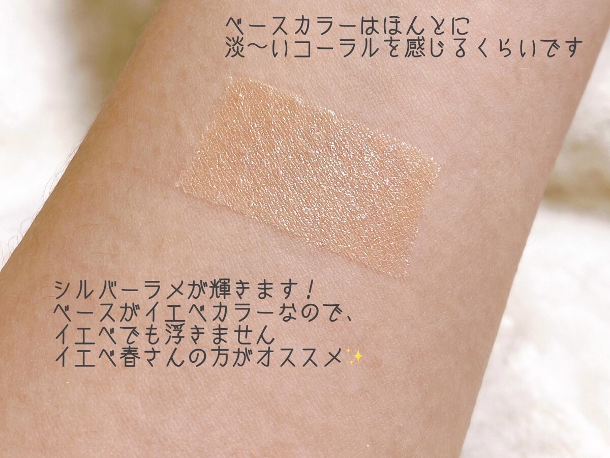 マットはかなりくすんだ色で、暗めのメイクに仕上がりがちに🤎 ツヤ感が大事だと言われるイエベ春でも、スモーキーメイク出来るんだ…!と思わせてくれたパレット。 愛して止まないミルクラテ、絶妙な柔らかベージュに透明感たっぷりのラメ✨️ 全色ラメ入りですが、真ん中2色のくすみと黄みが強く、どんよりした目元に…🥲 コーラルは大好きなんですが、このパレットは3滴白みを足したような色で、発色も弱くまぶたにも乗りづらく、かなり色白さんでないと使えない気がします…🥲 手持ちの中で1番黄み強いですが、1番完成度の高いです💕