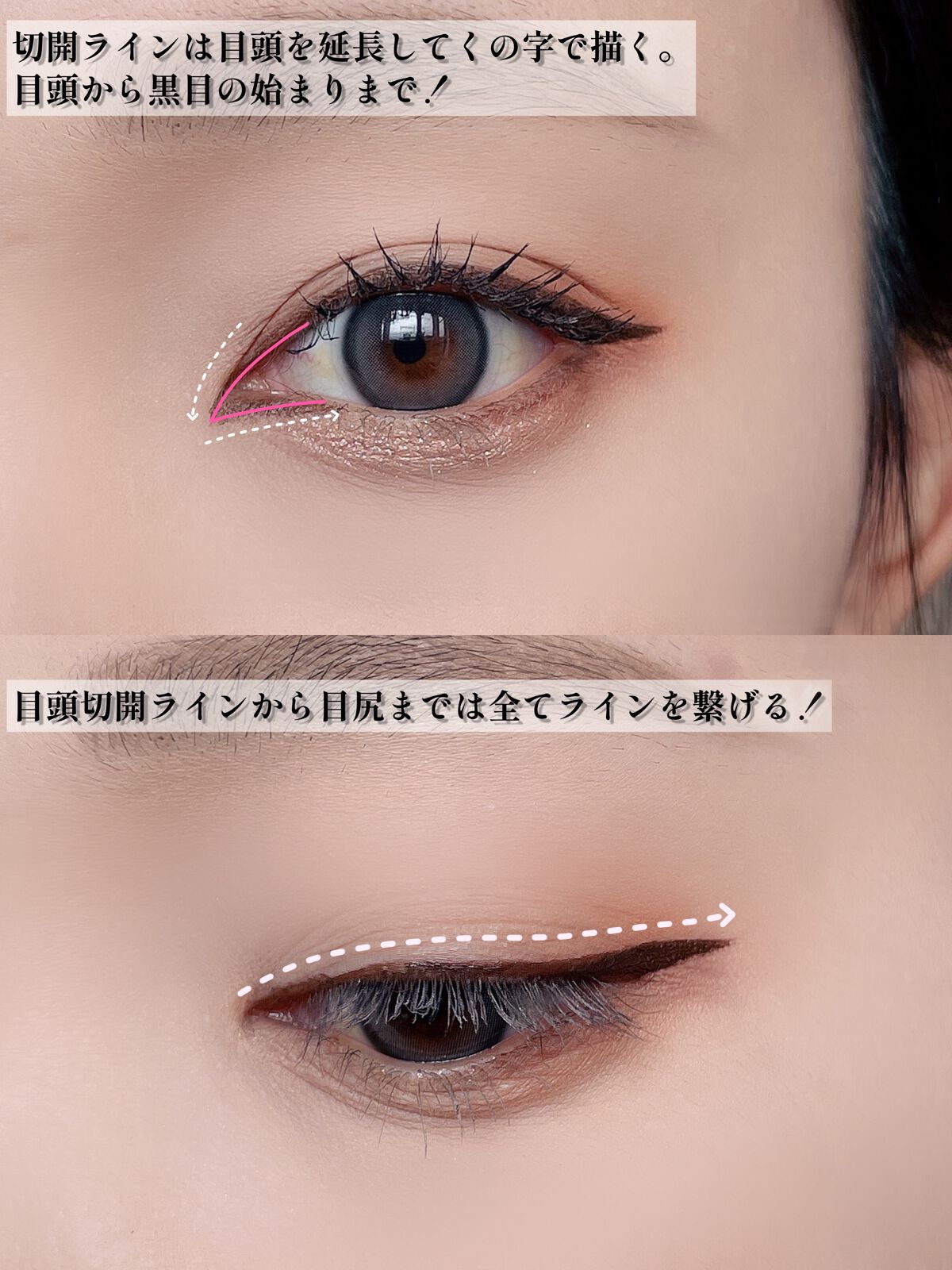 ã¡ã€ã¯ãæ¿ãããªããŠãçããã ããã¥ã©ã«ãªå¢æãã¡ã€ã¯ã§ãïŒ äžå€®ã空ããŠãç®é ãšç®å°»ã«ã¡ã€ã³ã«ã©ãŒ å¹³è¡å蟺圢ãæèãã ç®ãéããæã«èŠãããšããã«ã©ã¡ãã®ãã