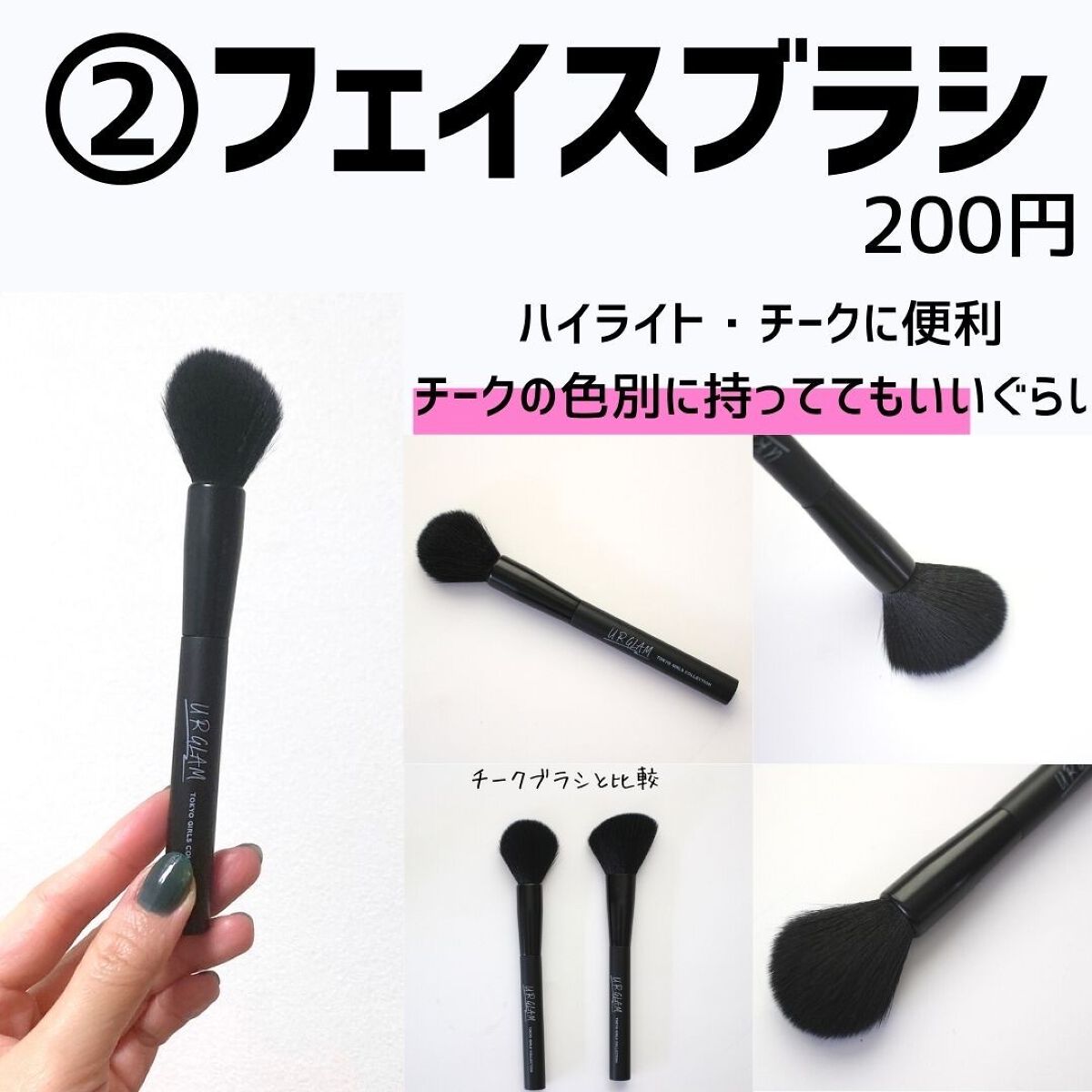 U R GLAMと東京ガールズコレクション(TGC)とのコラボコスメ♡ 2024秋冬の新作、毛量たっぷりのメイクブラシ。 もふもふでふわっと大きめだから、フェイスパウダーやチークに合いそうだよ。 気楽に洗えそうではある〜◎