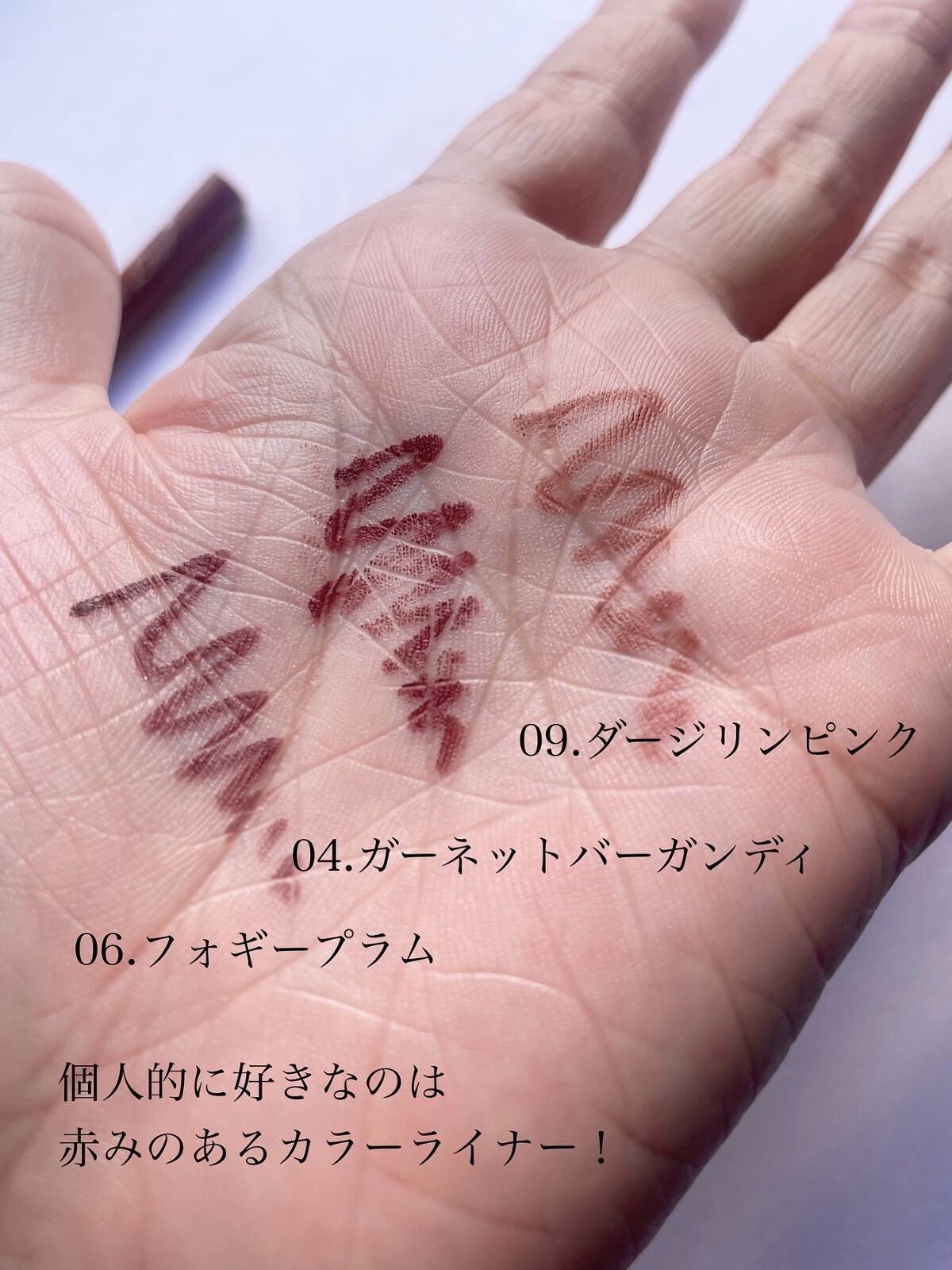 派手さがあるわけじゃないんだけど、この2色持っておけばどんなメイクの日も合うし、やり過ぎ感もなければ物足りなさもないというちょーーーどいいとこを抑えてくれてる安心感。 03の甘美は好みど真ん中でたまらんカラーでした😩 秋らしいブラウン味はあるんだけどくすみすぎないし、程よいローズカラーだから女性らしさもしっかり残る。オシャレとモテの両取りできるようなカラー。 04の余韻は逆にクリアカラー。顔がパァっと明るくなるからお疲れ顔にもテキメン🫶 私ブルベなもんでお疲れところに普通のオレンジが来ると黄くすみしちゃうんだけどこれはクリアだし気にならなかった! ちなみに色残りはそこそこ。絶対落ちない系の残り方ではないです。でも汚く残らないのが私的に最高。だって直した時にめちゃ綺麗な状態に戻せるから!