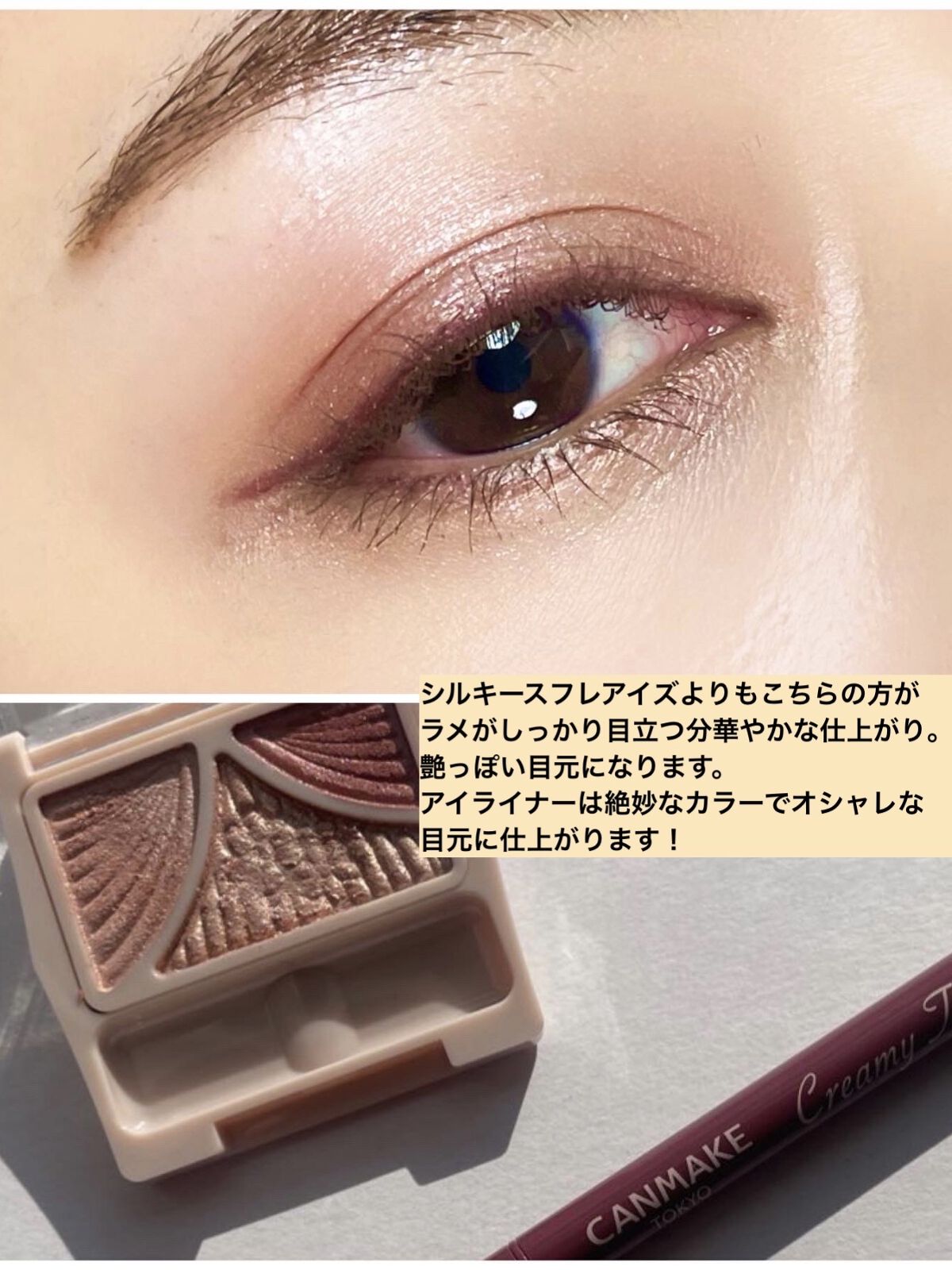 ⌜今日のメイク⌟𓍳キャンメイク・ジューシーピュアアイズ・12チャイティーローズ﹏﹏﹏﹏﹏﹏﹏﹏﹏﹏﹏﹏﹏﹏﹏﹏﹏﹏﹏﹏久しぶりにジューシーピュアアイズ12使ってメイクしたらめちゃかわでした⸝꙳.˖アイシャドウベースつけなくても発色がいいところ...