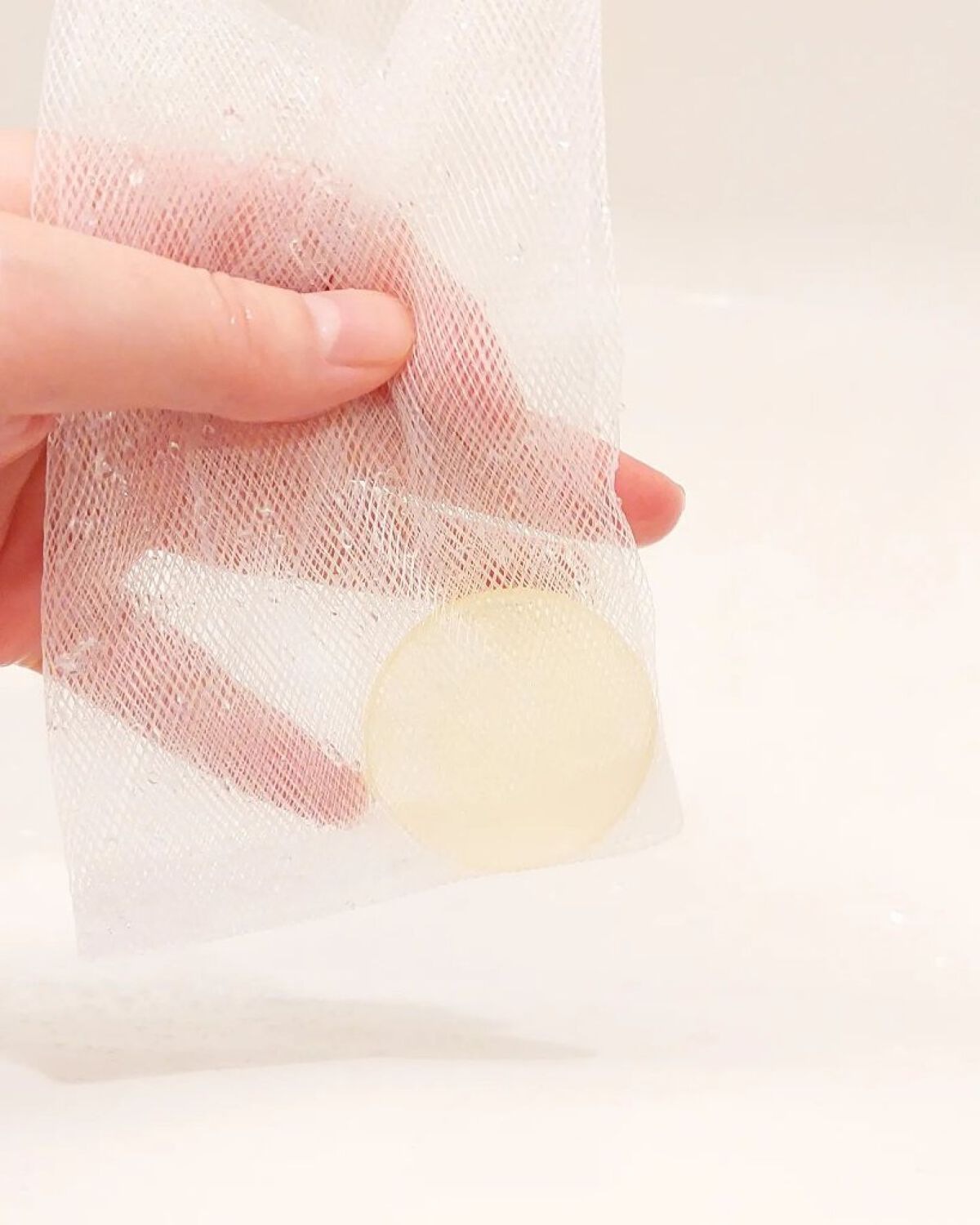 ものすごく独特で、織物の製造過程から発生する高保湿成分を含んだ天然シルクの束を固形石鹸に閉じ込めています。 濃密な泡と柔らかい絹糸で肌をマッサージすることにより、ゴワゴワの肌もツヤツヤになるそうです。 濱縮緬マッサージングソープは、実はきぬいとが現れた面でお肌をマッサージしながら、直接洗うのをメーカーさんではオススメされています。 肌が敏感な片やニキビの片は、泡立てネットを使ってモコモコ泡を作ってから優しく洗いましょう! 泡立てネットで泡立てると、濃厚なモコモコ泡が出来上がり! 洗いあがりは、突っ張らないけど、サッパリと洗い上がる使用感です。 濱縮緬マッサージングソープは男女兼用で使えちゃいます。