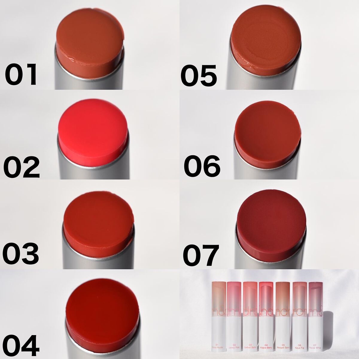 - もちっとした水膜で弾けそうなツヤリップ 1.軽い塗り心地のなめらかで透明な水爆弾ツヤ 2.塗った瞬間から唇を鮮やかに彩る多彩なカラーバーム 3.植物性保湿オイルでしっとりもっちり保湿バーム