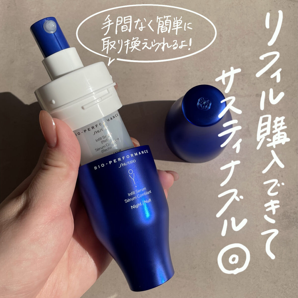 SHISEIDO🌿ビオパフォーマンススキンフィラービオパフォーマンスインフィルセラム夜用美容液🌝独自のヒアルロン酸分子の大きさを調整する技術開発に成功。内側から輝くような、ハリと弾力のあるうるおいで満ち満ちた年齢を感じさせない肌へ少しとろみが...