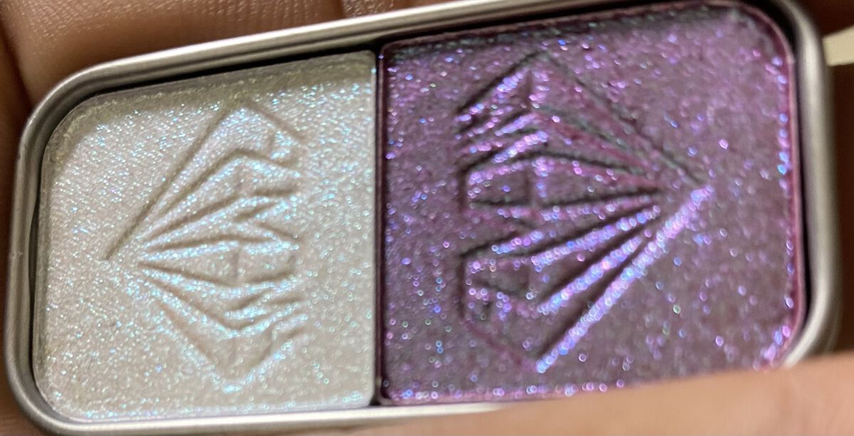 めっちゃちっこいアイシャドウ缶に入ってて可愛い✨蓋はスライド式。2色とも偏光パールで綺麗。画像にするのが難しい💦開封前のパケもお菓子みたいで可愛かった😀この綺麗さが伝わったらいいなぁ☺️...