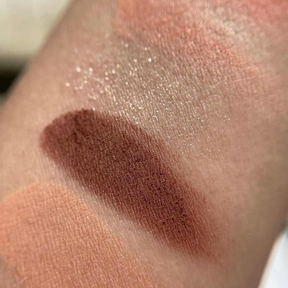 ビーアイドルの中で今までで1番好きかも❤️ 粉質は結構柔らかめ!スウォッチみたら淡い感じするけど目元に塗ると思ったよりしっかり発色🤗 ラメの粒は大きめかも🙋♀️ だからやっぱり頬にラメはちょっと落ちるよね😅 配色はどれ使ってもどの組み合わせでも可愛いんだよな〜😌❤️