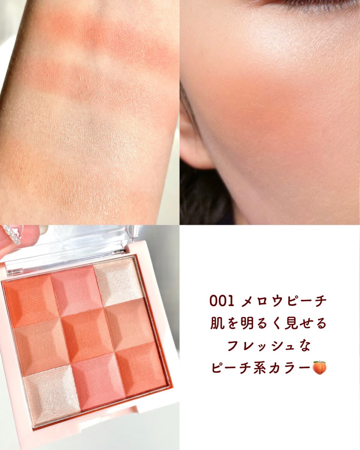 - 3つのチークとハイライターが1つになったマルチパレット ひとつで何通りものフィニッシュが楽しめる、便利なアイテム。 チークとハイライターのブレンド次第で、ほんのりから華やかな⾎⾊感まで、いろいろなメイクが楽しめます。 1.ひとつのパレットに3つのチークとハイライターがIN 2.マイクロ微粒⼦パウダーだから、ふわっとムラなく、肌に密着! 3.フレッシュな⾎⾊感で「美肌⾒え」 4.植物由来の保湿成分* 配合 ※紙製パッケージ⼊り * 保湿成分:スクワラン、シア脂、メドウフォーム種⼦油