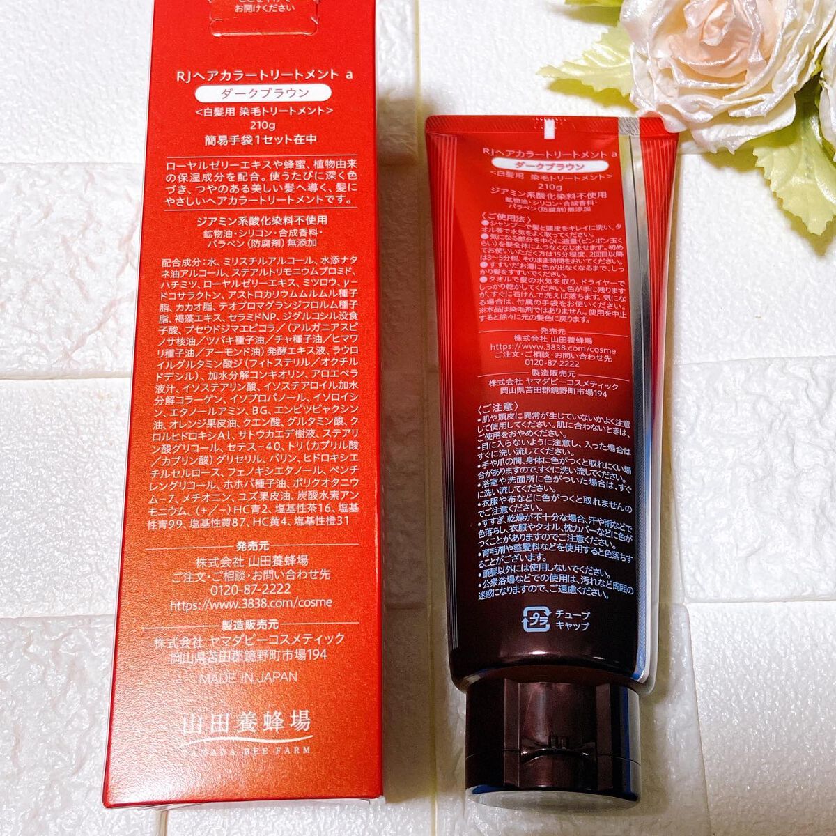 山田養蜂場の、アピセラピーコスメティクスよりRJヘアカラートリートメント ご紹介✨️ 色はダークブラウン 使い方は簡単で、シャンプー後、ビニール手袋して手に取り白髪部分に塗ってちょっと放置。 ヘアカラーなのにトリートメントも出来るのはポイント高め 白髪染めでお悩みの方は是非(*^^*)