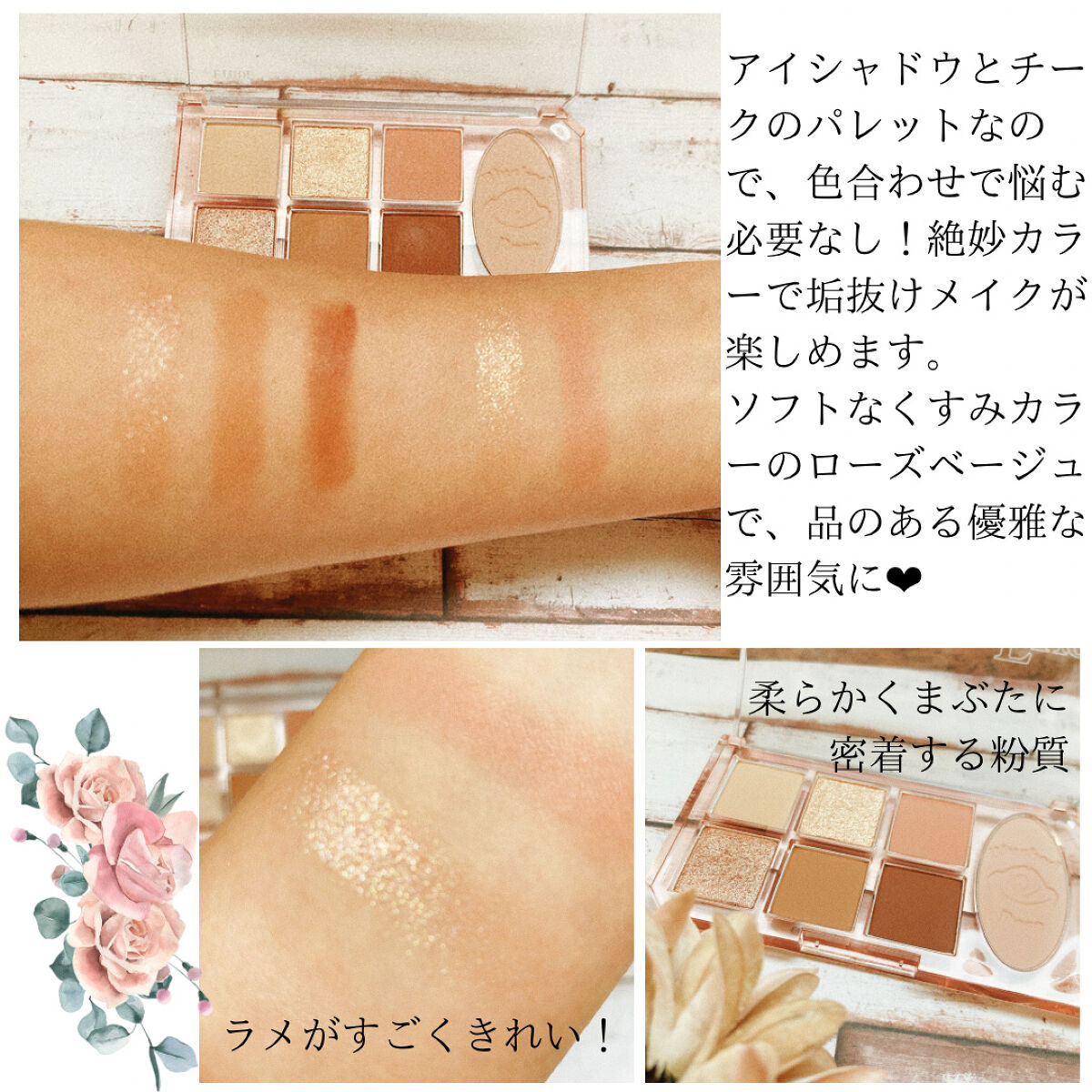 - 簡単に統一感のあるメイクに仕上げられる、アイシャドウとチークのカラーバランスを考えて作られた6色アイシャドウ&チークパレット。メイク初心者の方も日常使いしやすく、メイクマニアの方はアレンジ次第で何通りも楽しめる!手軽に楽しめるトーンオントーンメイクで、あなたに似合うカラーコーデを楽しんで♡