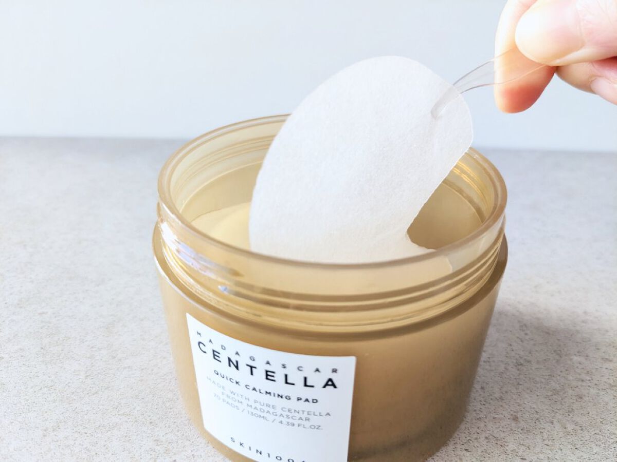 たっぷりのエッセンスが入っています☺️✨ パッドの質感も柔らかくて、肌あたりが良いです💁♀️ ツボクサエキスが入ってくれているおかげが、鎮静効果も感じられます! サラッとしたテスクチャーで、次のスキンケアの邪魔もせずに使えるので、朝晩どちらも使ってます✨