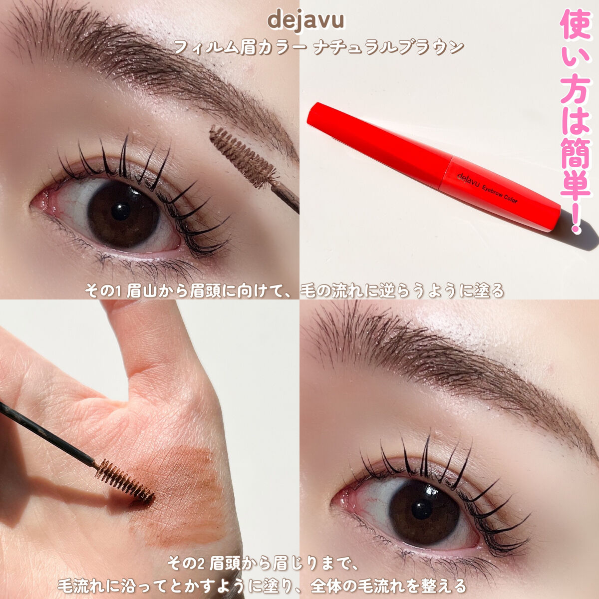 - \\25年3月定番新色モカグレージュ発売// 「フィルム眉カラー」なら眉の印象を自然にやわらげ、ふんわり質感の垢抜け眉に! 1.塗りやすい極小ブラシ ・ 先端直径3mmで、地肌に液がつきにくく根元から色づける ・余分な液がつかない設計で、ティッシュオフ不要 2.眉専用フィルム液 ・眉毛1本1本にキレイに色付き、自眉の黒さをやわらげる ・タバになったり、パリッと固まったりせず、まるで自眉のような仕上がり ・皮脂・汗・こすれに強いのにお湯で簡単オフ (※2025年9月以降、商品パッケージをリニューアル。)