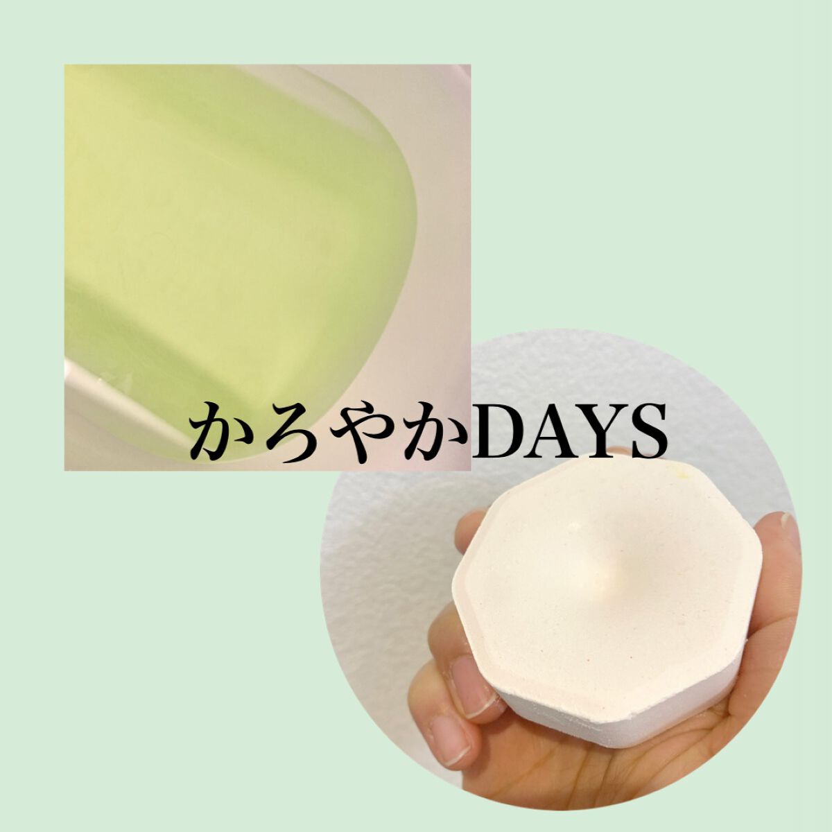 温浴効果を高めて筋肉をほぐし 肩こり・腰痛に効く かろやかDAYS 気分かろやかシトラスグリーンの香り。 シトラスグリーンの爽やかな香りもとても良かったです。全体的な使用感から、「かろやかDAYS」というネーミングは本当にこの商品にピッタリだなと思いました💗 990円で6錠入りなので、同じ値段で4個入りのモンスターバブルMEGA級と比較すると少しお安め。