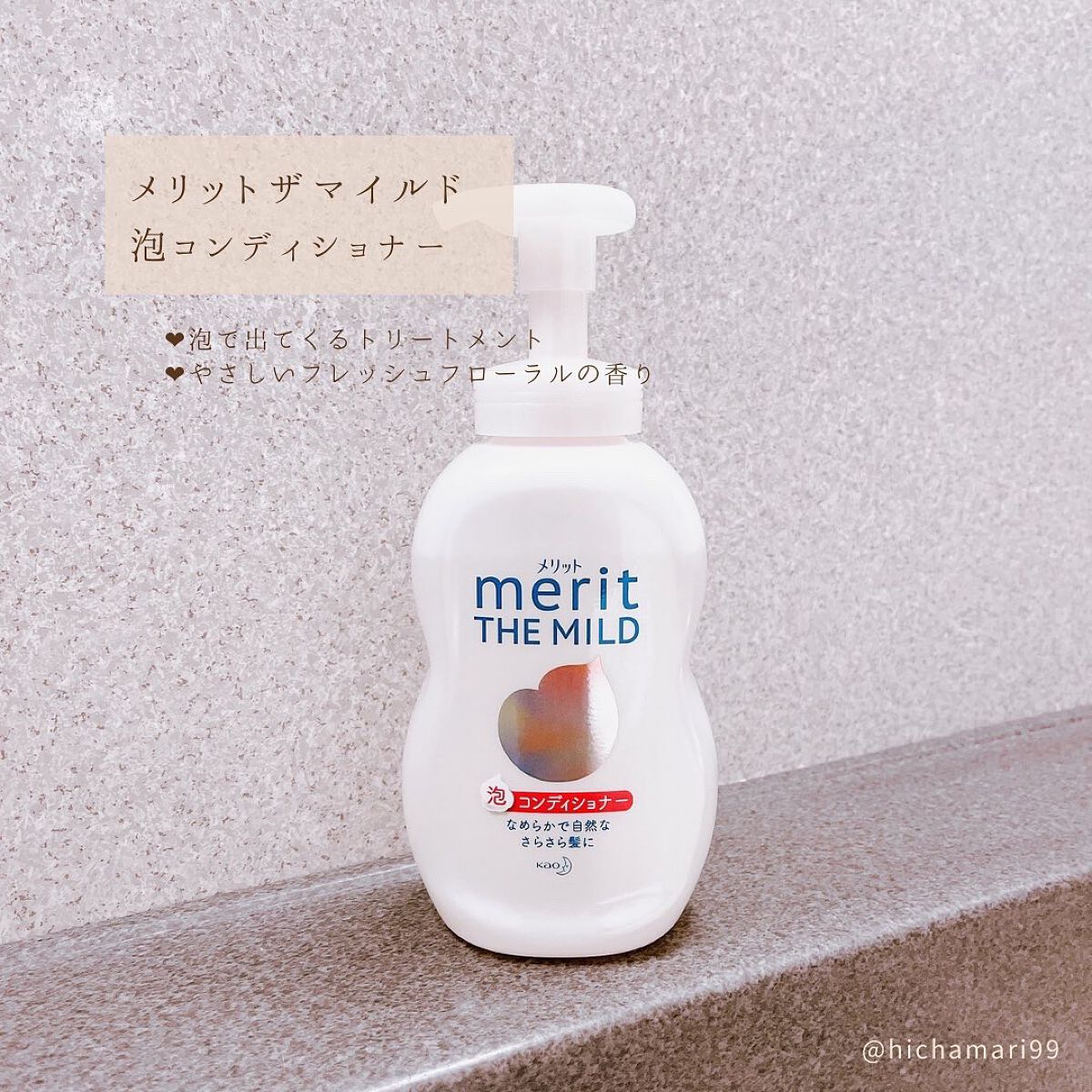 - シャンプーを泡立てる時、地肌をゴシゴシしていたり、コンディショナーのぬるつきが気になるといった地肌をやさしく洗いたい方に着目。 メリット ザマイルドは地肌へのやさしさを考えて、シャンプーもコンディショナーも最初からふわもこ泡で出る泡タイプ。 最初から泡だから、泡立て時にゴシゴシせずに摩擦を防いで地肌と髪をやさしく清潔に洗い上げます。 コンディショナーも泡だから、むらなくなじんで、なめらかで自然なさらさら髪に仕上げます。
