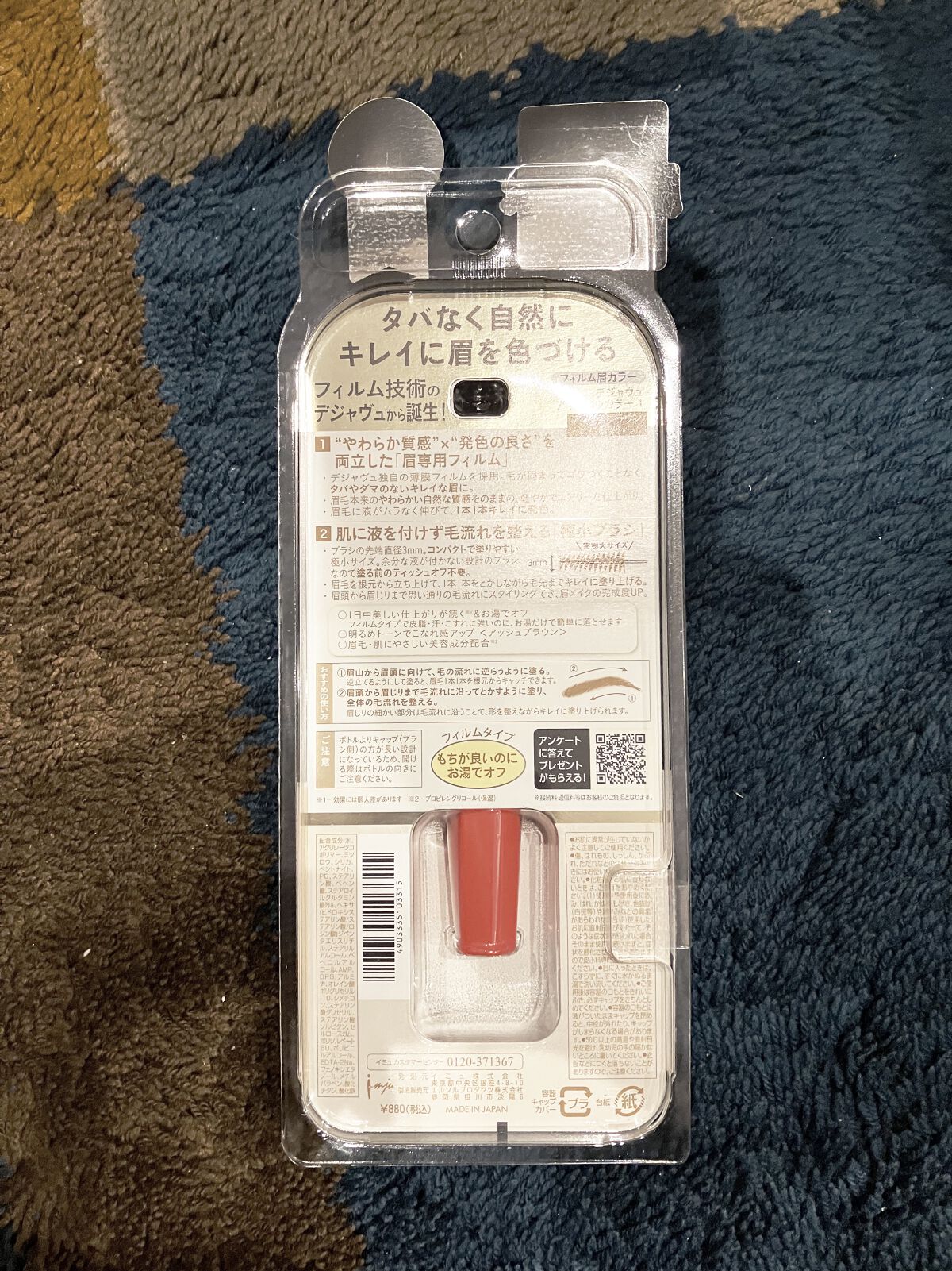 - \\25年3月定番新色モカグレージュ発売// 「フィルム眉カラー」なら眉の印象を自然にやわらげ、ふんわり質感の垢抜け眉に! 1.塗りやすい極小ブラシ ・ 先端直径3mmで、地肌に液がつきにくく根元から色づける ・余分な液がつかない設計で、ティッシュオフ不要 2.眉専用フィルム液 ・眉毛1本1本にキレイに色付き、自眉の黒さをやわらげる ・タバになったり、パリッと固まったりせず、まるで自眉のような仕上がり ・皮脂・汗・こすれに強いのにお湯で簡単オフ (※2025年9月以降、商品パッケージをリニューアル。)