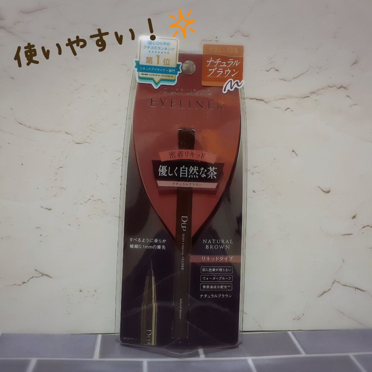 LIPSさんを通してD-UP様からシルキーリキッドアイライナーWP頂きましたありがとうございます✧••✧D-UPシルキーリキッドアイライナーWPNBナチュラルブラウン✧••✧パッケージ薄茶色カラー薄めの自然なブラウン仕様筆タイプ使い方よく降っ...