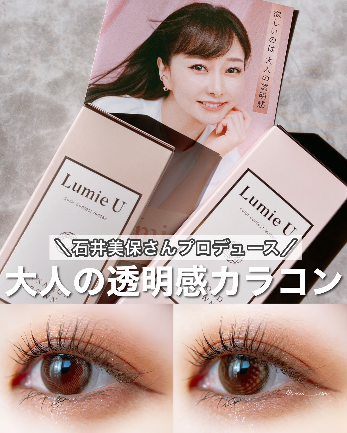 ナチュラルにこっそり仕込む大人の透明感🫶🏻 石井美保さんプロデュースカラコン Lumie Uから待望の新色が登場! 光を取り込むショコラブラウンカラー 3色の中では、フチが一番しっかりしていて着色直径も大きめだからナチュラルだけど、少し盛りたい時にピッタリ! 瞳の色をほんのり変えると印象も変わるし黒目の質感をナチュラルにキラリと整えてくれる!