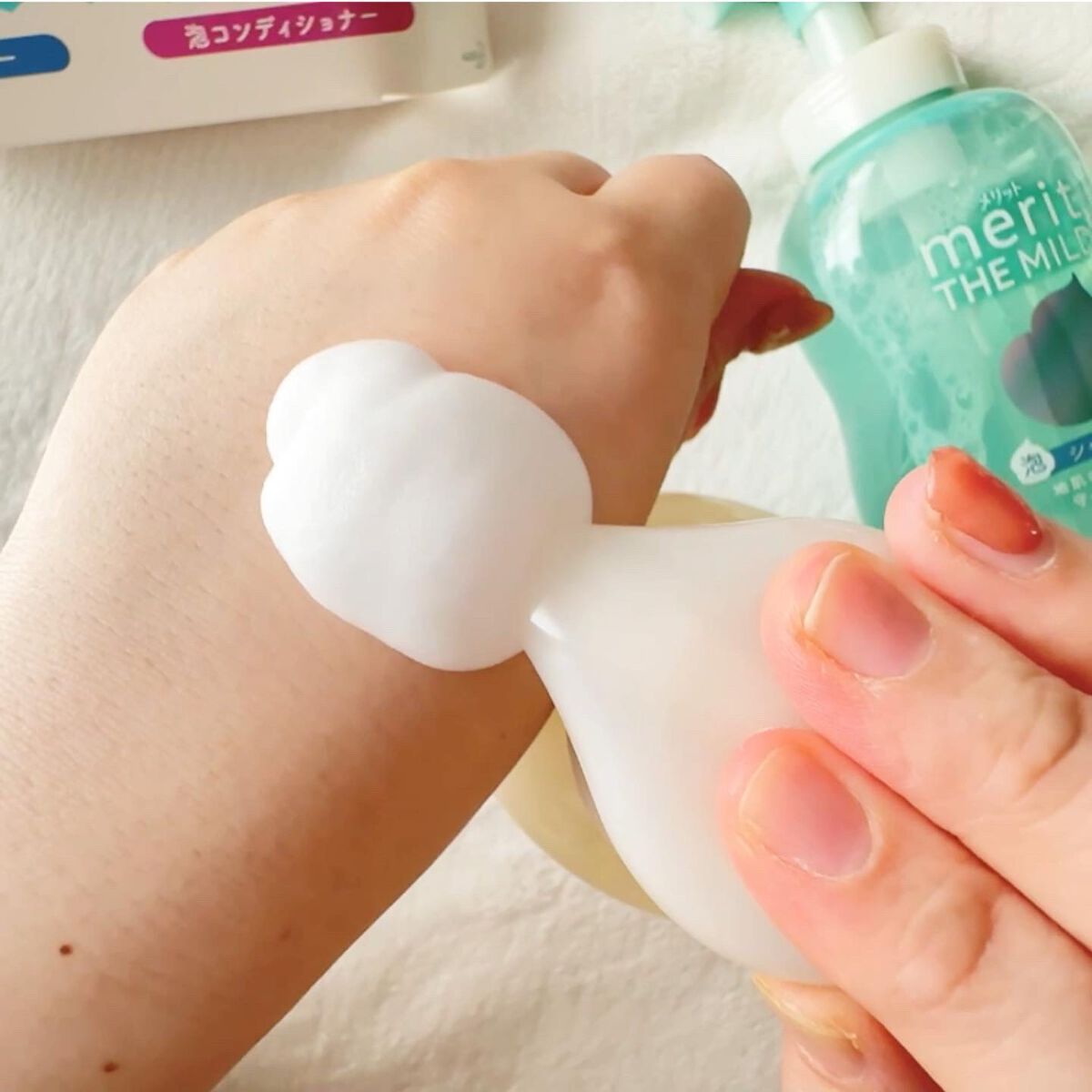 - シャンプーを泡立てる時、地肌をゴシゴシしていたり、コンディショナーのぬるつきが気になるといった地肌をやさしく洗いたい方に着目。 メリット ザマイルドは地肌へのやさしさを考えて、シャンプーもコンディショナーも最初からふわもこ泡で出る泡タイプ。 最初から泡だから、泡立て時にゴシゴシせずに摩擦を防いで地肌と髪をやさしく清潔に洗い上げます。 コンディショナーも泡だから、むらなくなじんで、なめらかで自然なさらさら髪に仕上げます。