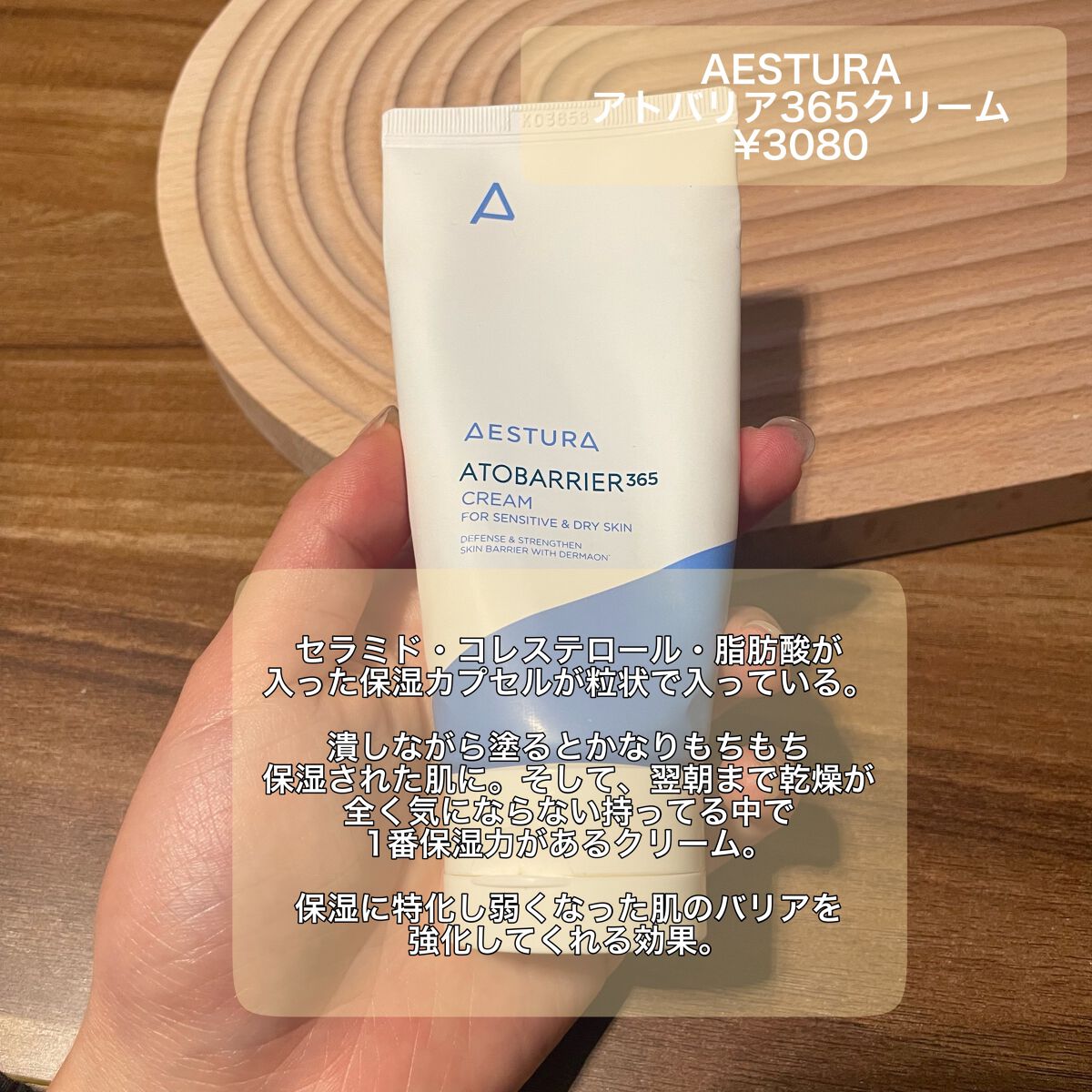 AESTURAアトバリア365クリーム敏感肌に特化したAESTURA独自技術の「高密度セラミドカプセル*」を配合したクリームつぶつぶと目に見えるカプセルが肌温度に触れると溶けだし、セラミドを肌表面に長くとどまらせてくれるそう🍀無配合🍀香料、着...