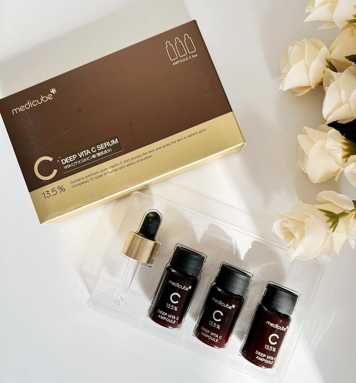 - ピュアビタミン*を13.5%も使った美容液です。 乾燥によってできる肌トラブルにアプローチし、ハリのある明るい印象のお肌へ導くのを助けます。 新鮮なビタミン*を使っていて、小さな3つのボトルに分かれて入っているので、管理も簡単です。 *整肌成分