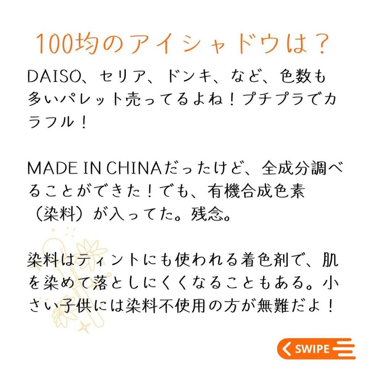 | 360円のめちゃかわアイシャドウ。コンパクトサイズでかさばらない!粉飛びしないで密着してくれる! | 詳細を見る |